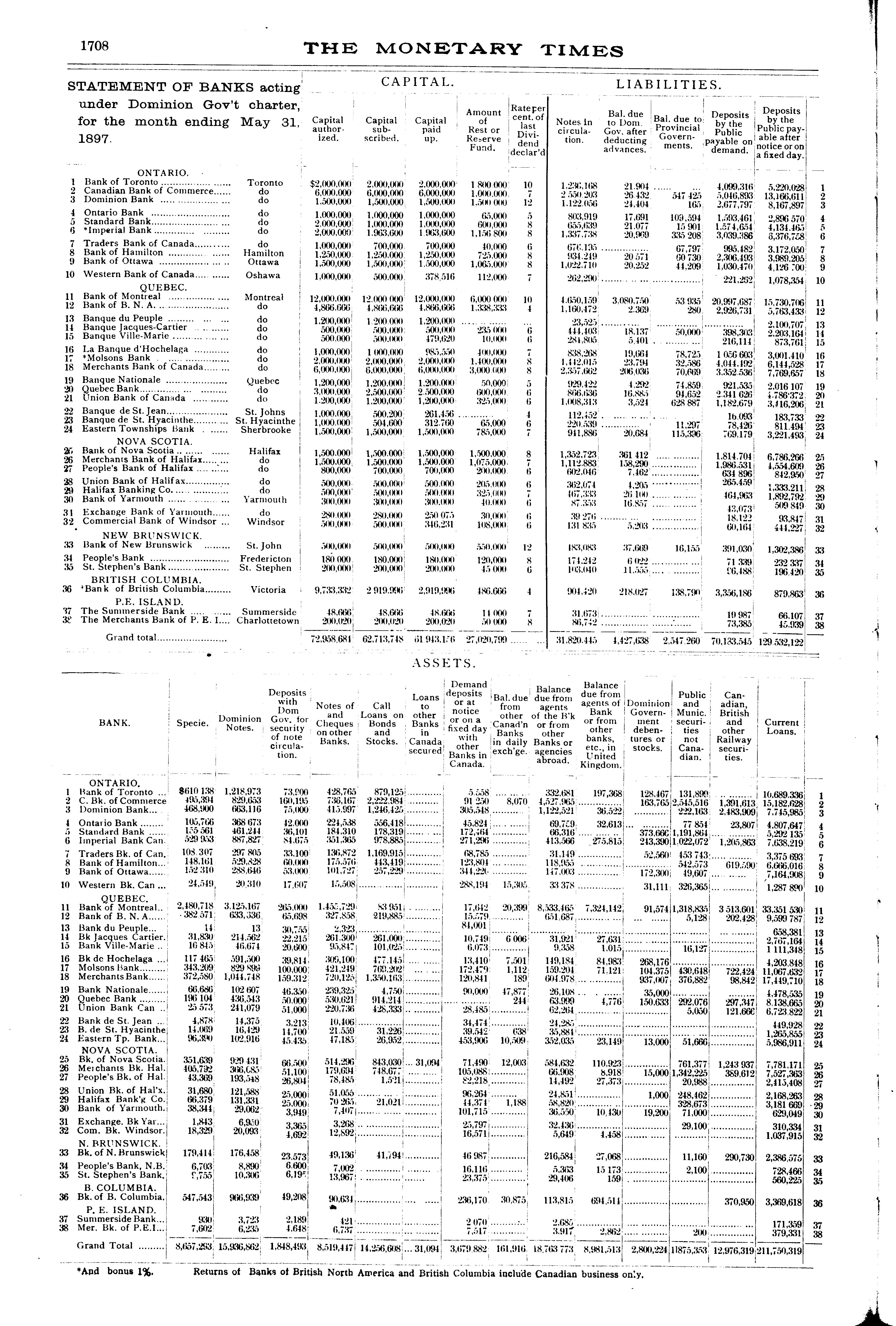 The monetary times, trade review and insurance chronicle : [Vol. 30, no. 52 (June 25, 1897)]