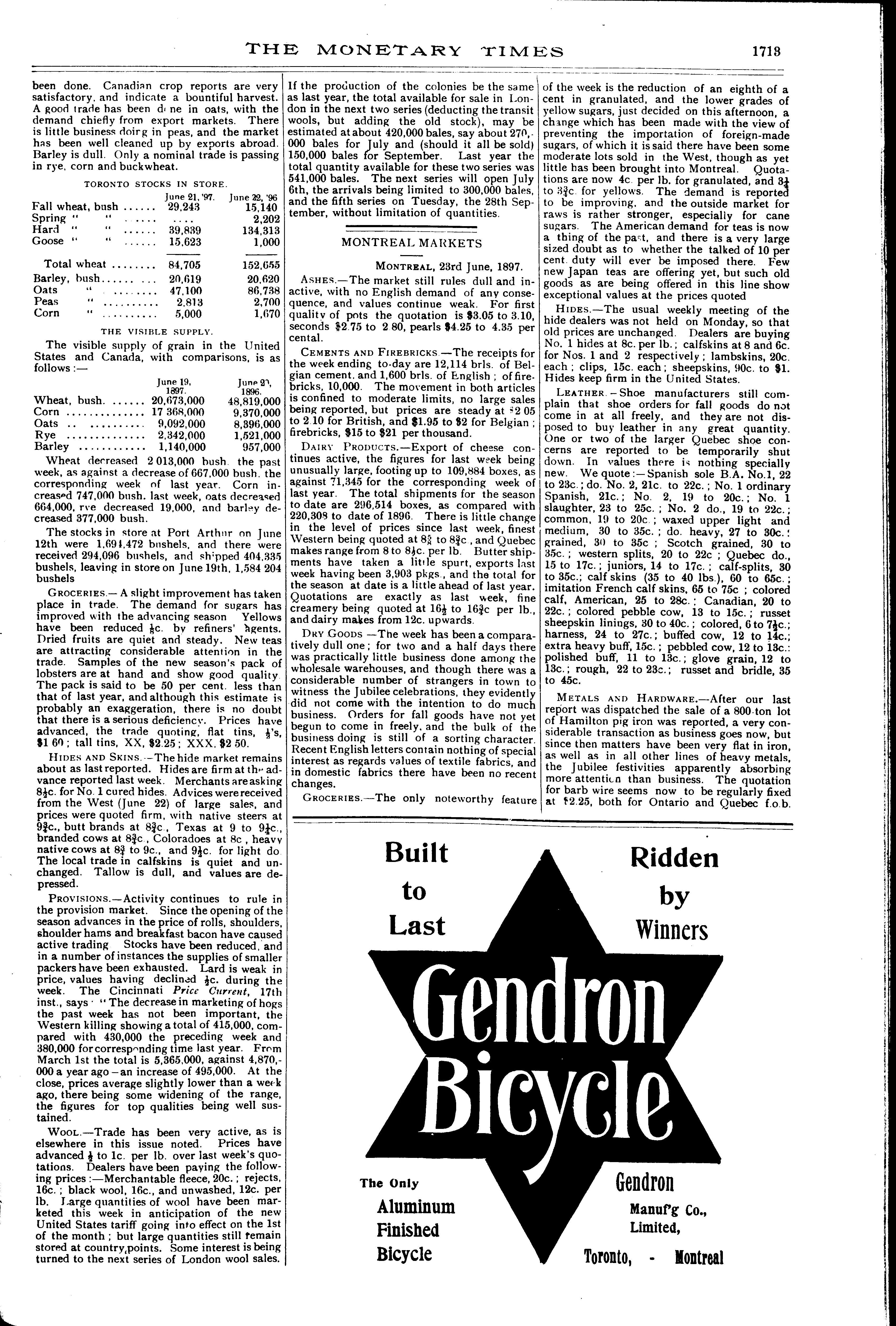 The monetary times, trade review and insurance chronicle : [Vol. 30, no. 52 (June 25, 1897)]
