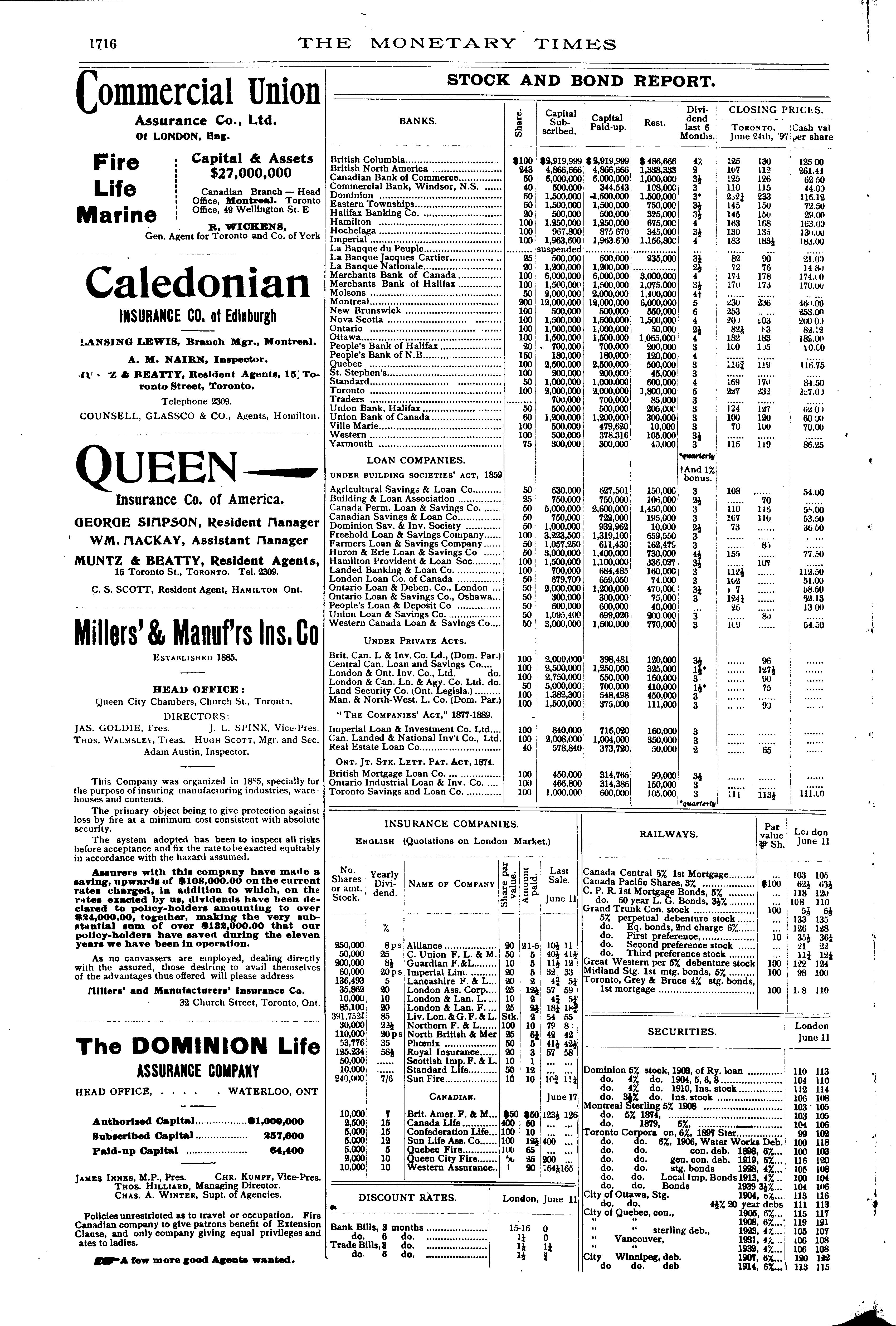 The monetary times, trade review and insurance chronicle : [Vol. 30, no. 52 (June 25, 1897)]