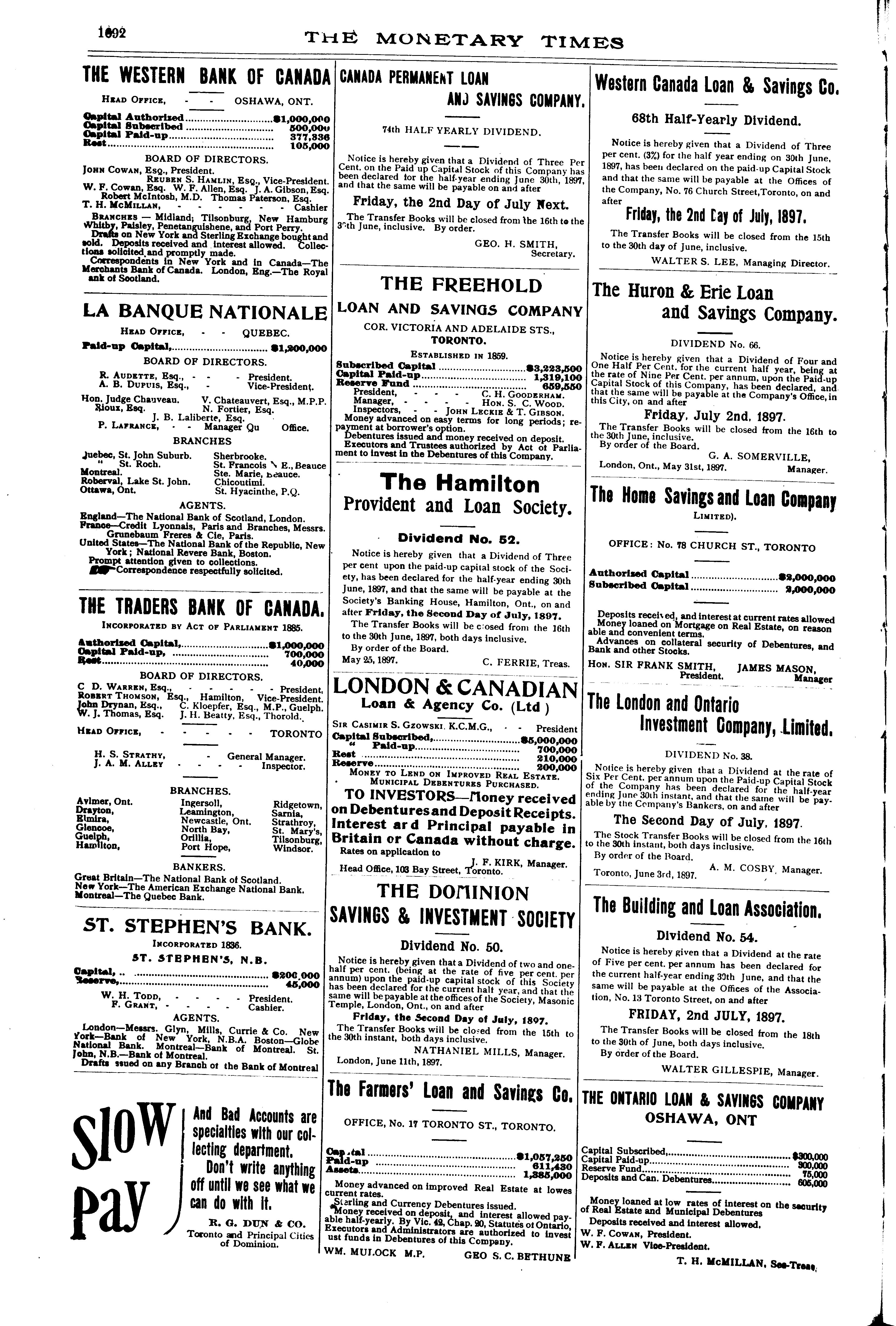 The monetary times, trade review and insurance chronicle : [Vol. 30, no. 52 (June 25, 1897)]