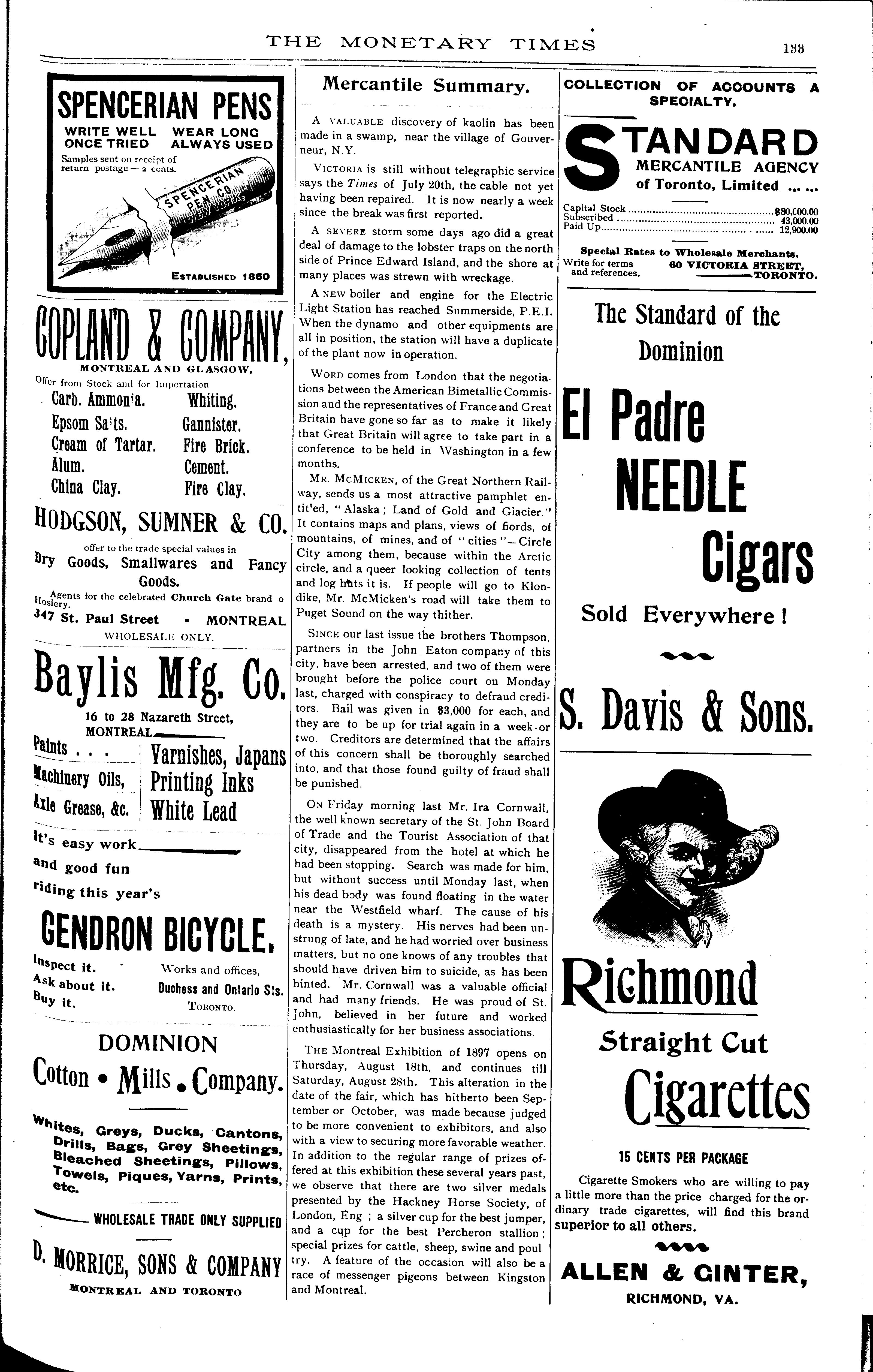 The monetary times, trade review and insurance chronicle : [Vol. 31, no. 5 (July 30, 1897)]