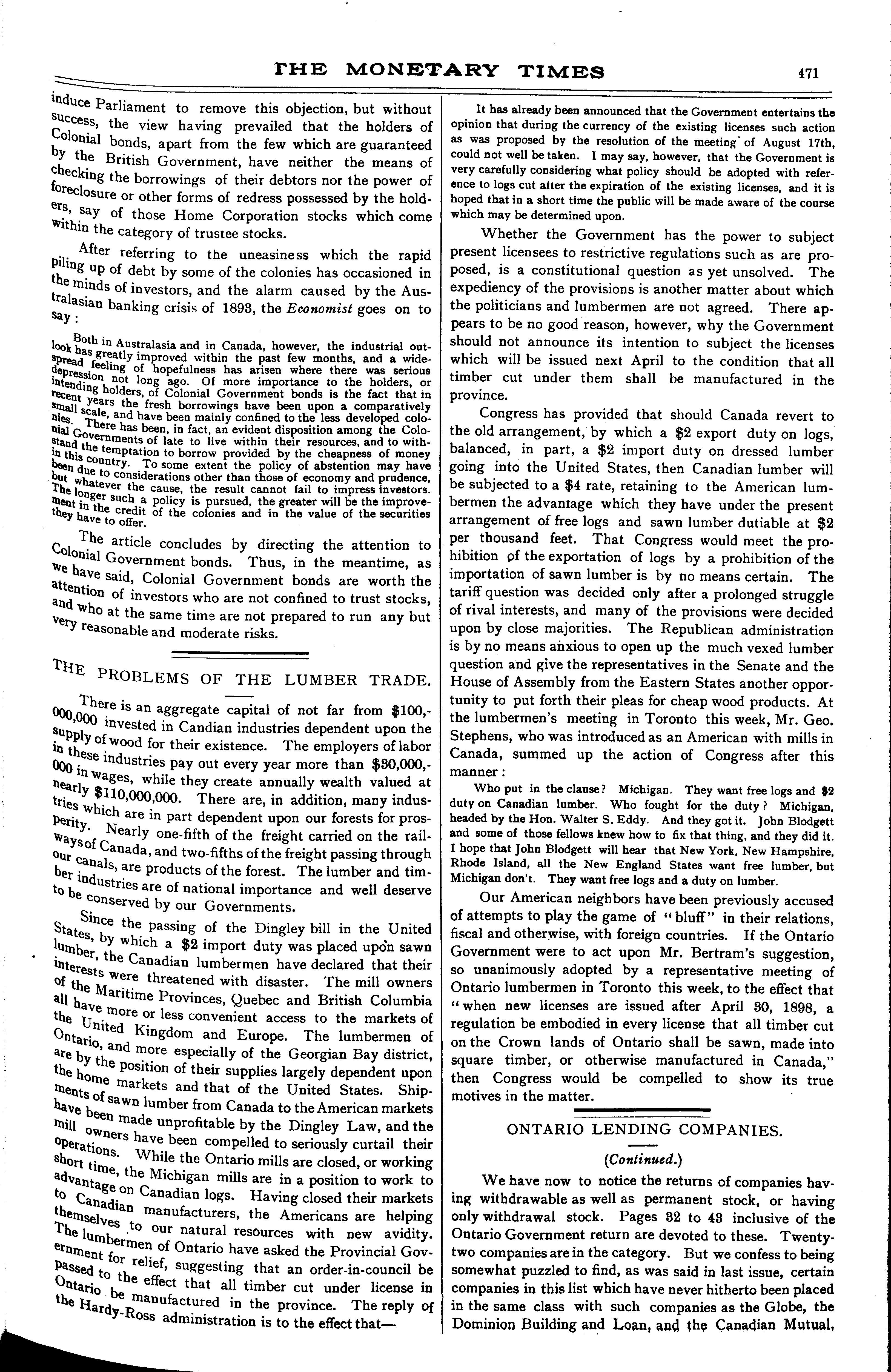- The monetary times, trade review and insurance chronicle [Vol. 31, no. 15 (Oct. 8, 1897)]