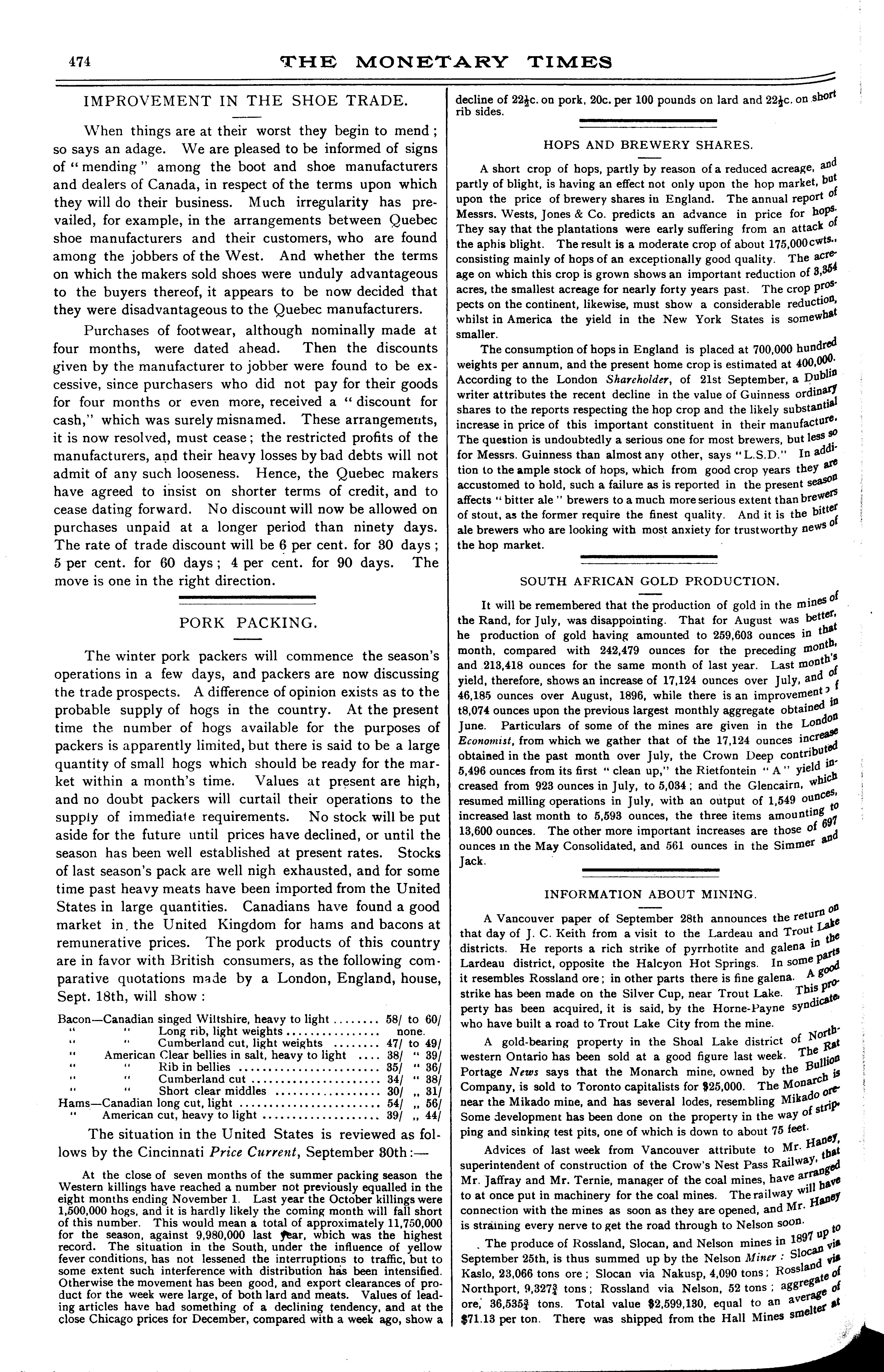 The monetary times, trade review and insurance chronicle : [Vol. 31, no. 15 (Oct. 8, 1897)]