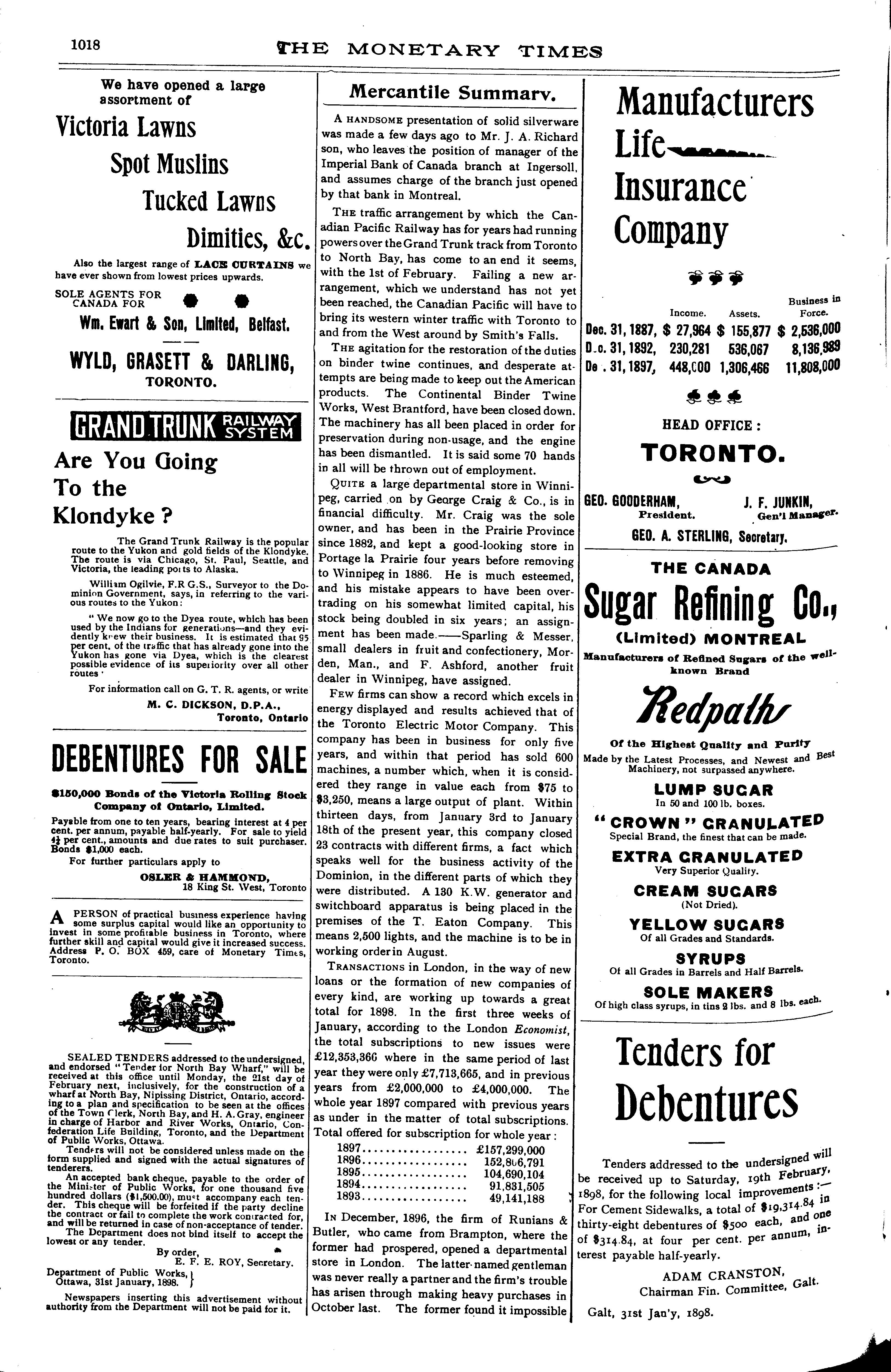 The monetary times, trade review and insurance chronicle : [Vol. 31, no. 32 (Feb. 4, 1898)]