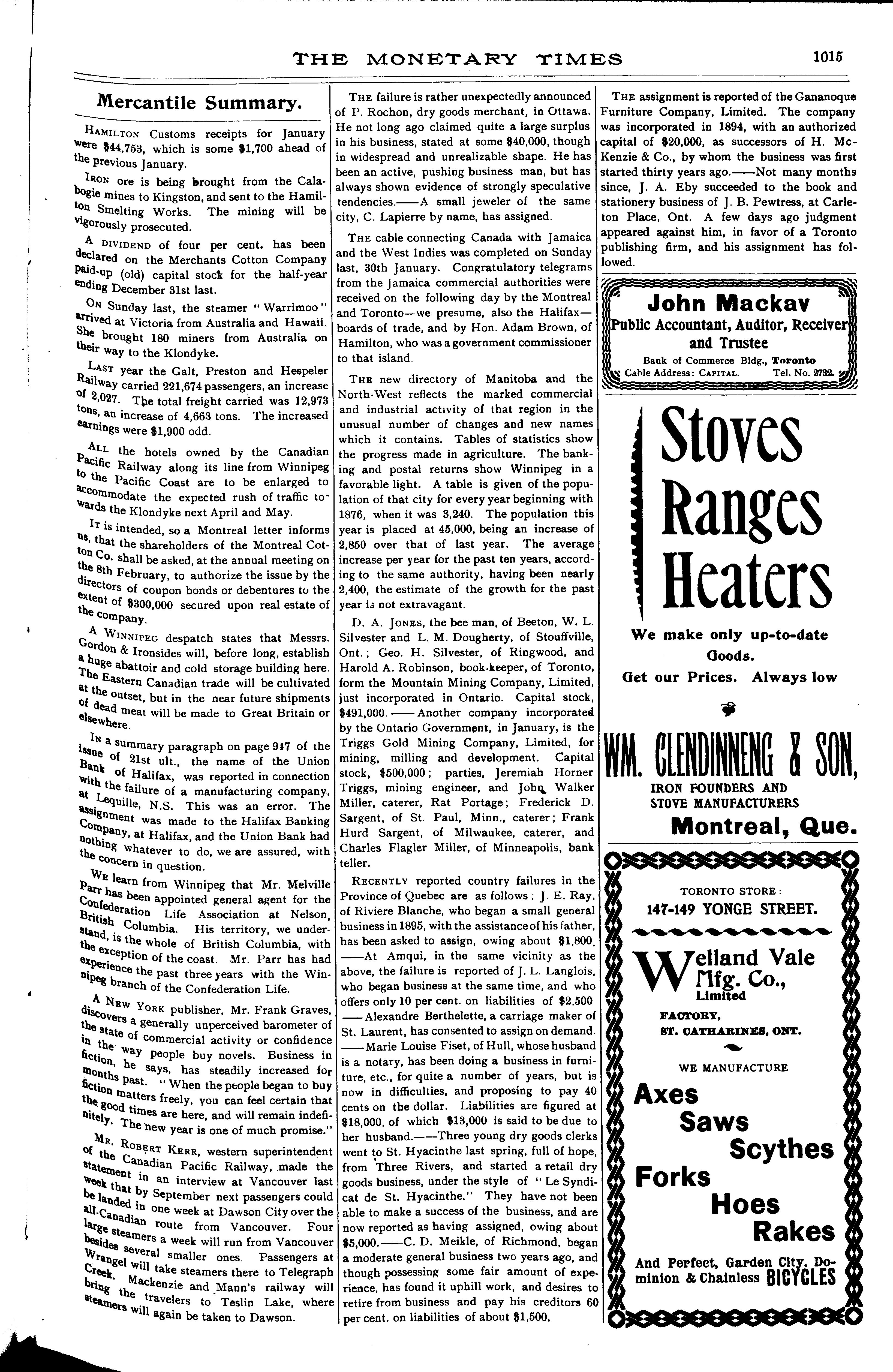 The monetary times, trade review and insurance chronicle : [Vol. 31, no. 32 (Feb. 4, 1898)]