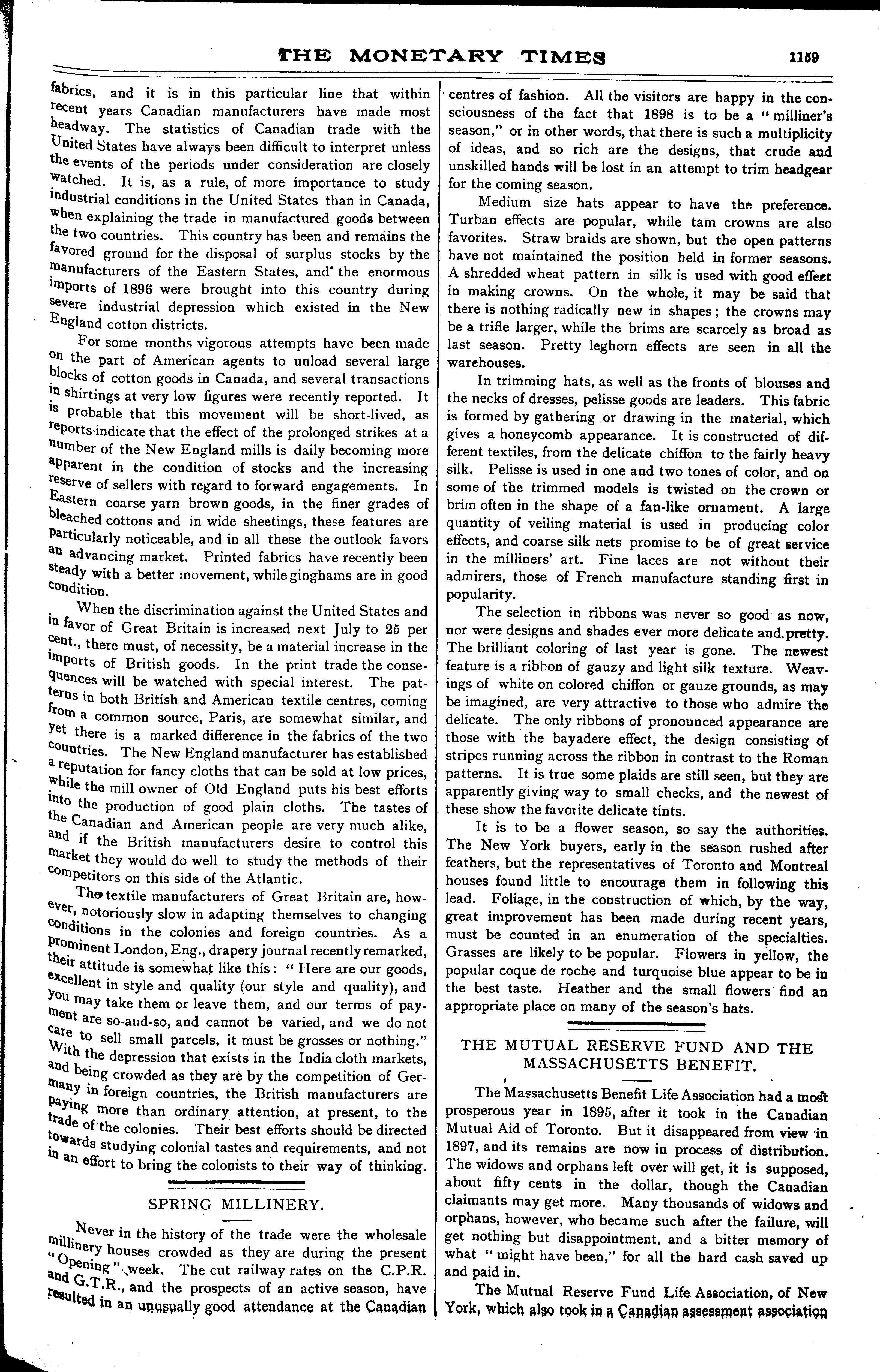 The monetary times, trade review and insurance chronicle : [Vol. 31, no. 36 (Mar. 4, 1898)]