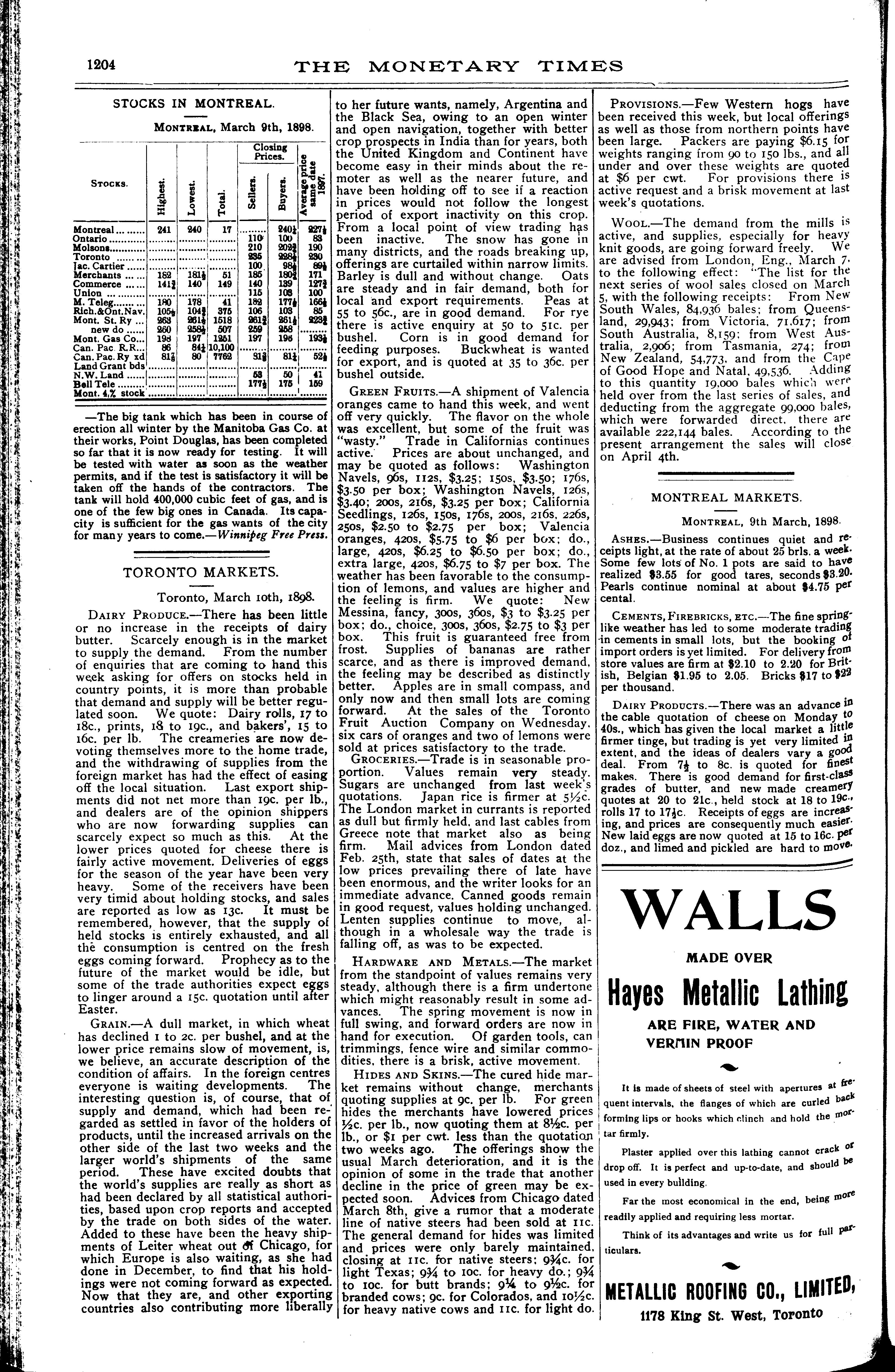 The monetary times, trade review and insurance chronicle : [Vol. 31, no. 37 (Mar. 11, 1898)]