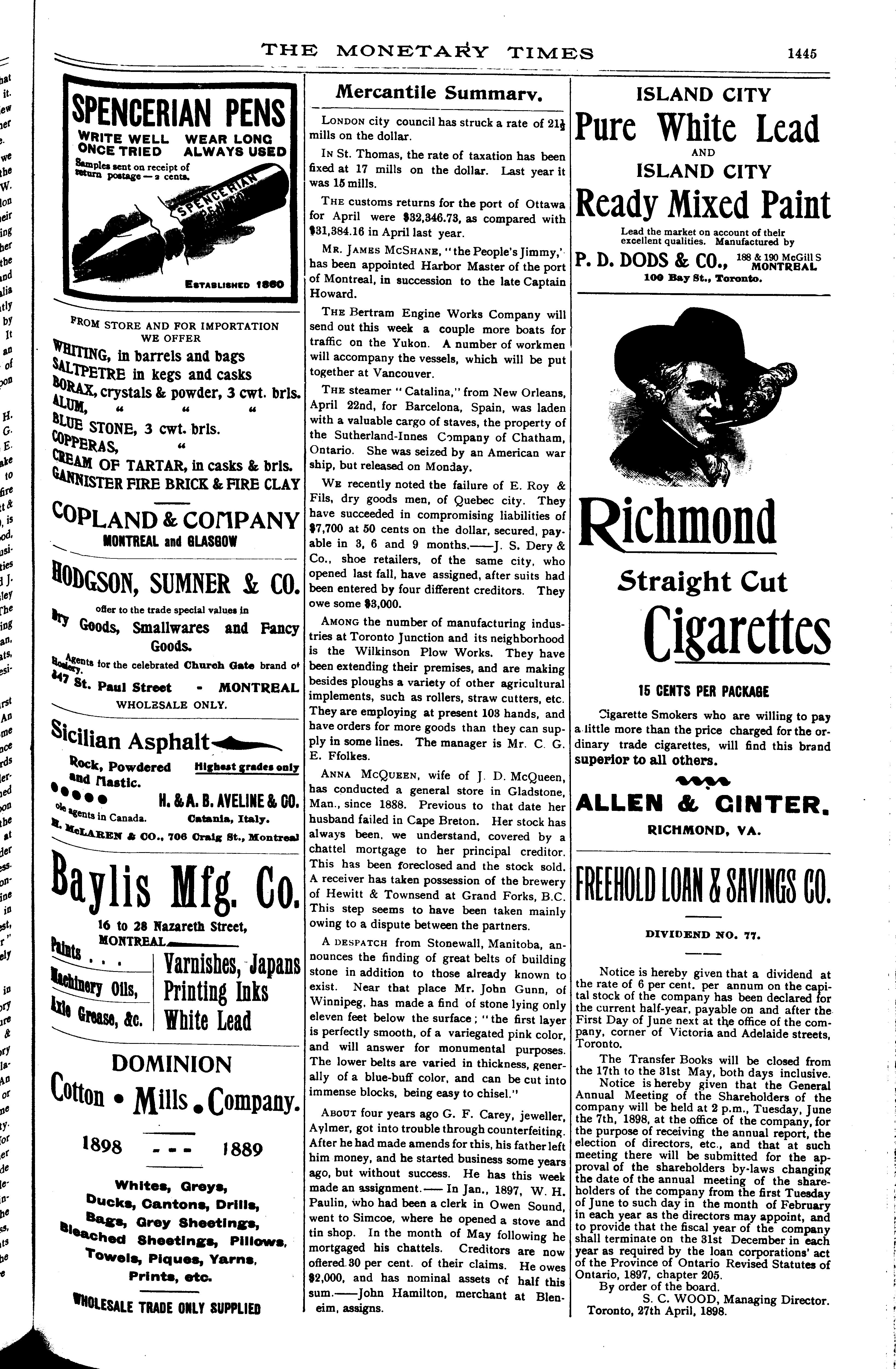 The monetary times, trade review and insurance chronicle : [Vol. 31, no. 45 (May 6, 1898)]