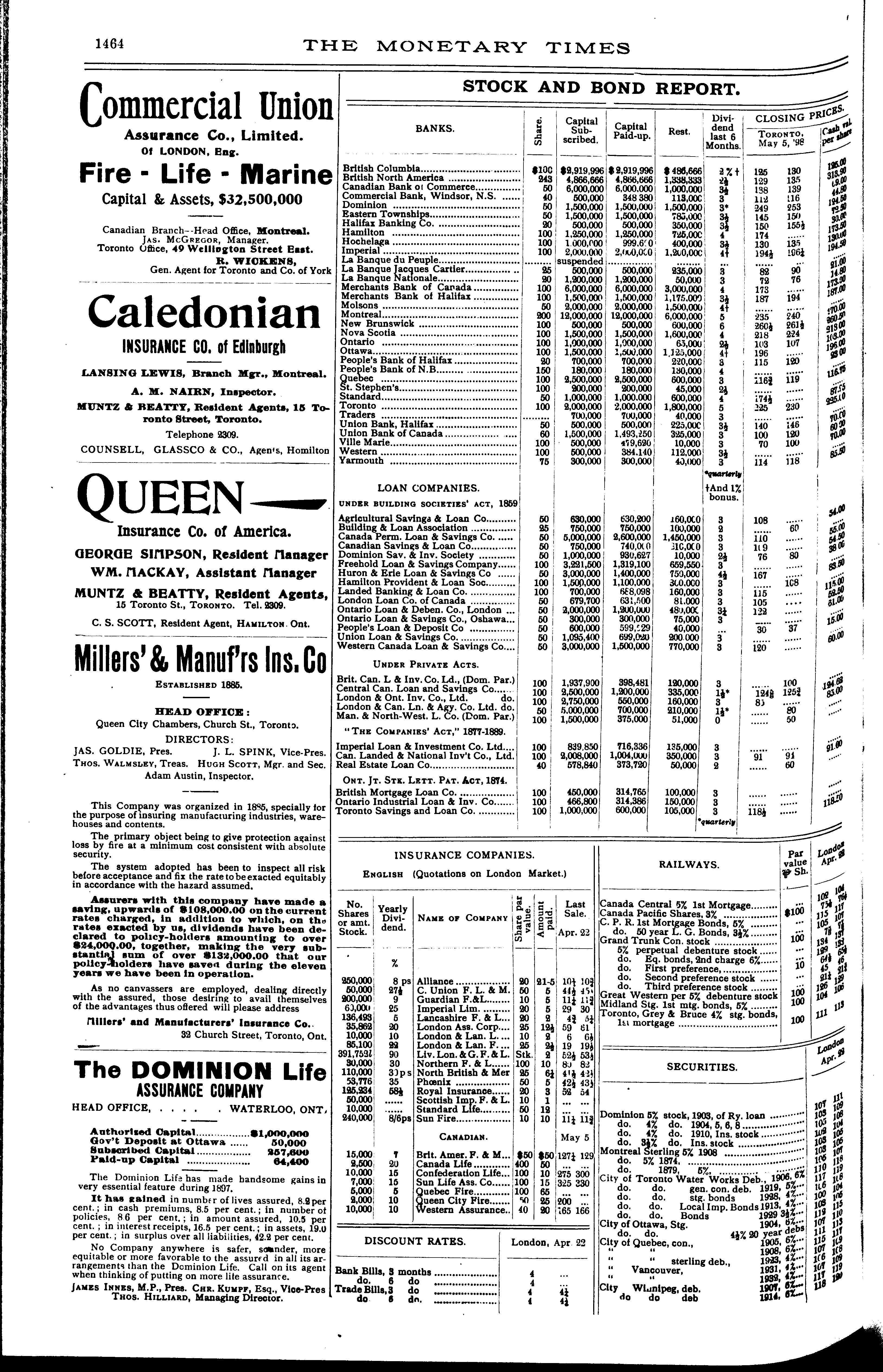 The monetary times, trade review and insurance chronicle : [Vol. 31, no. 45 (May 6, 1898)]