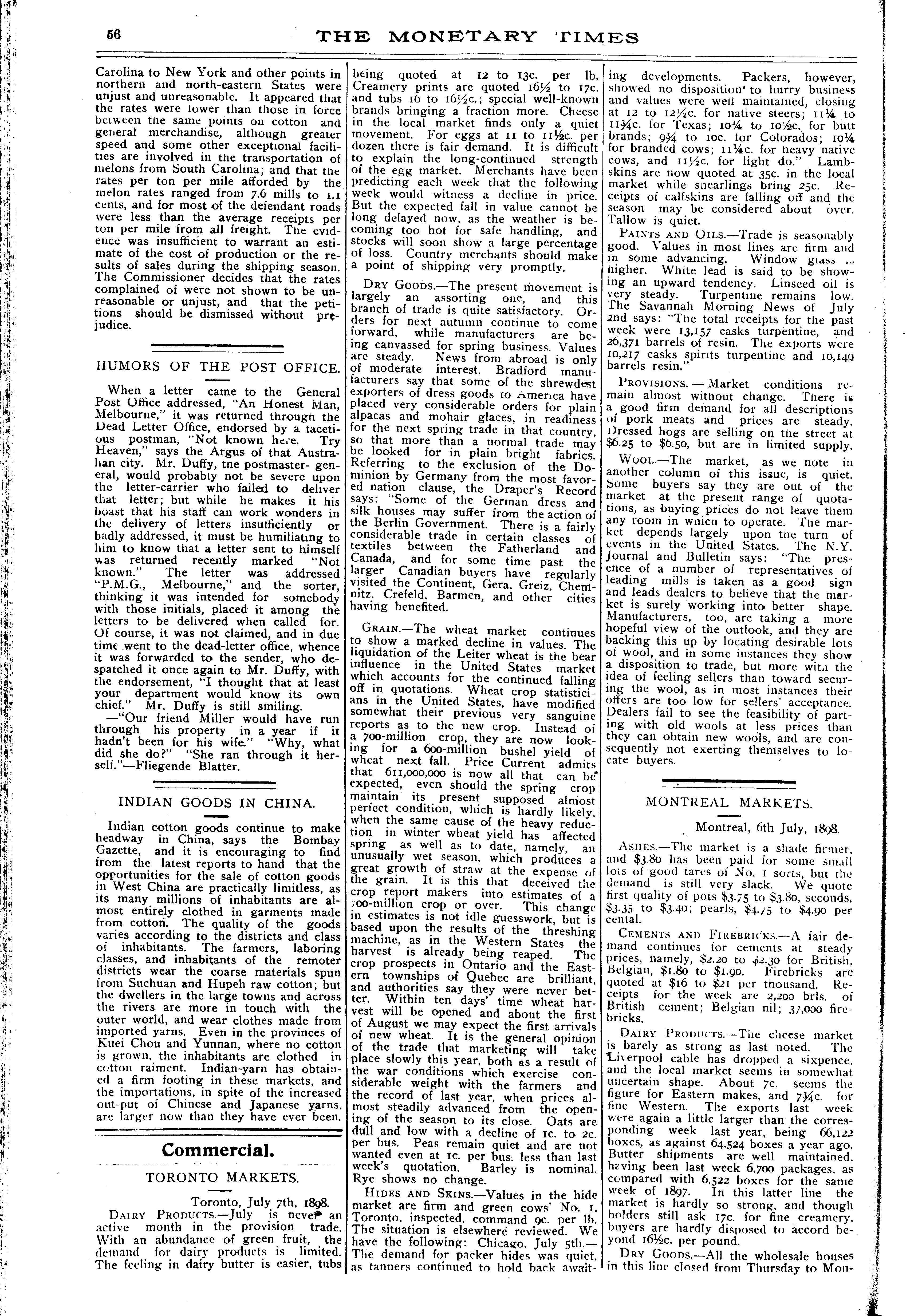 The monetary times, trade review and insurance chronicle : [Vol. 32, no. 2 (July 8, 1898)]