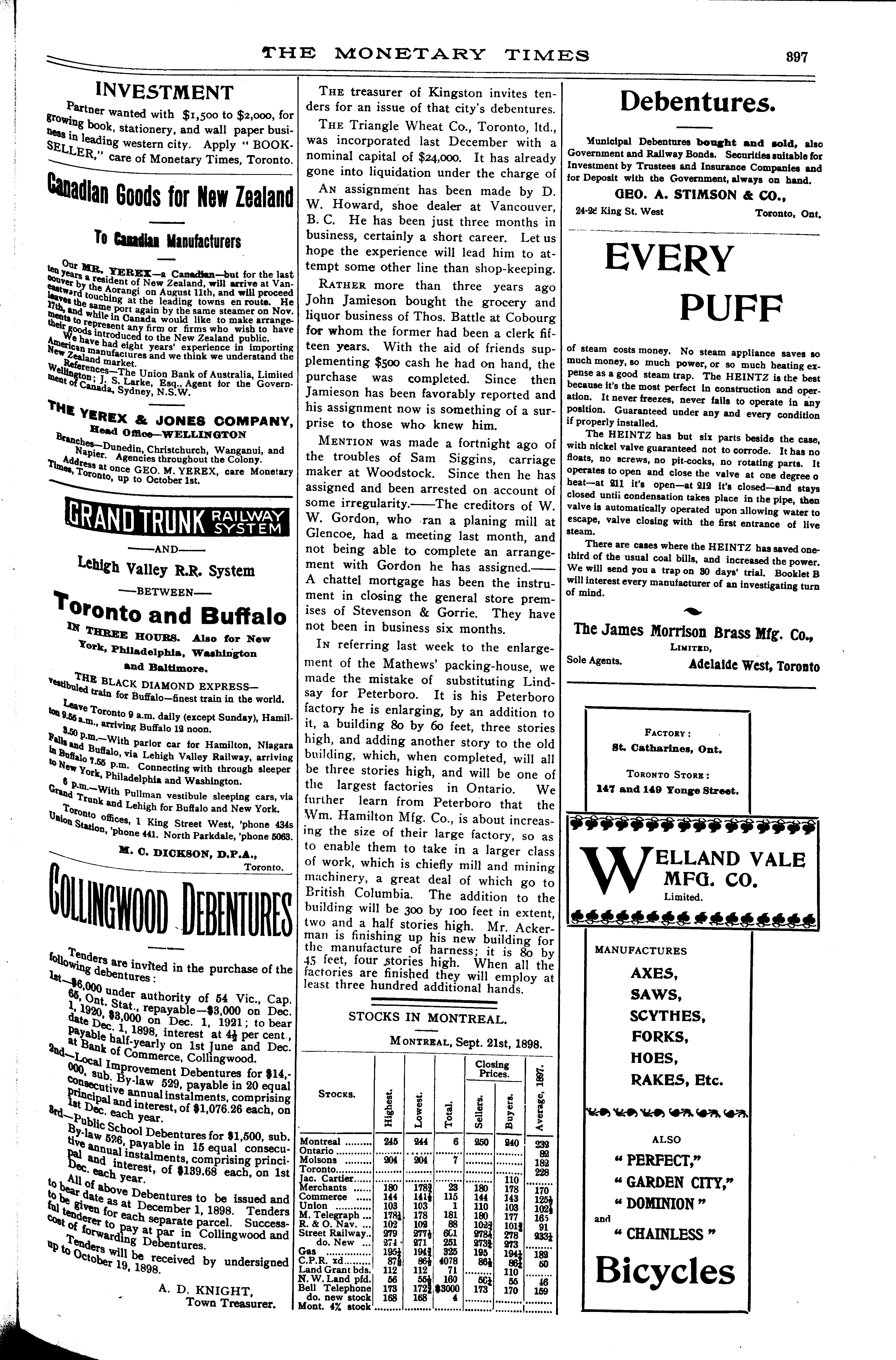 The monetary times, trade review and insurance chronicle : [Vol. 32, no. 13 (Sept. 23, 1898)]