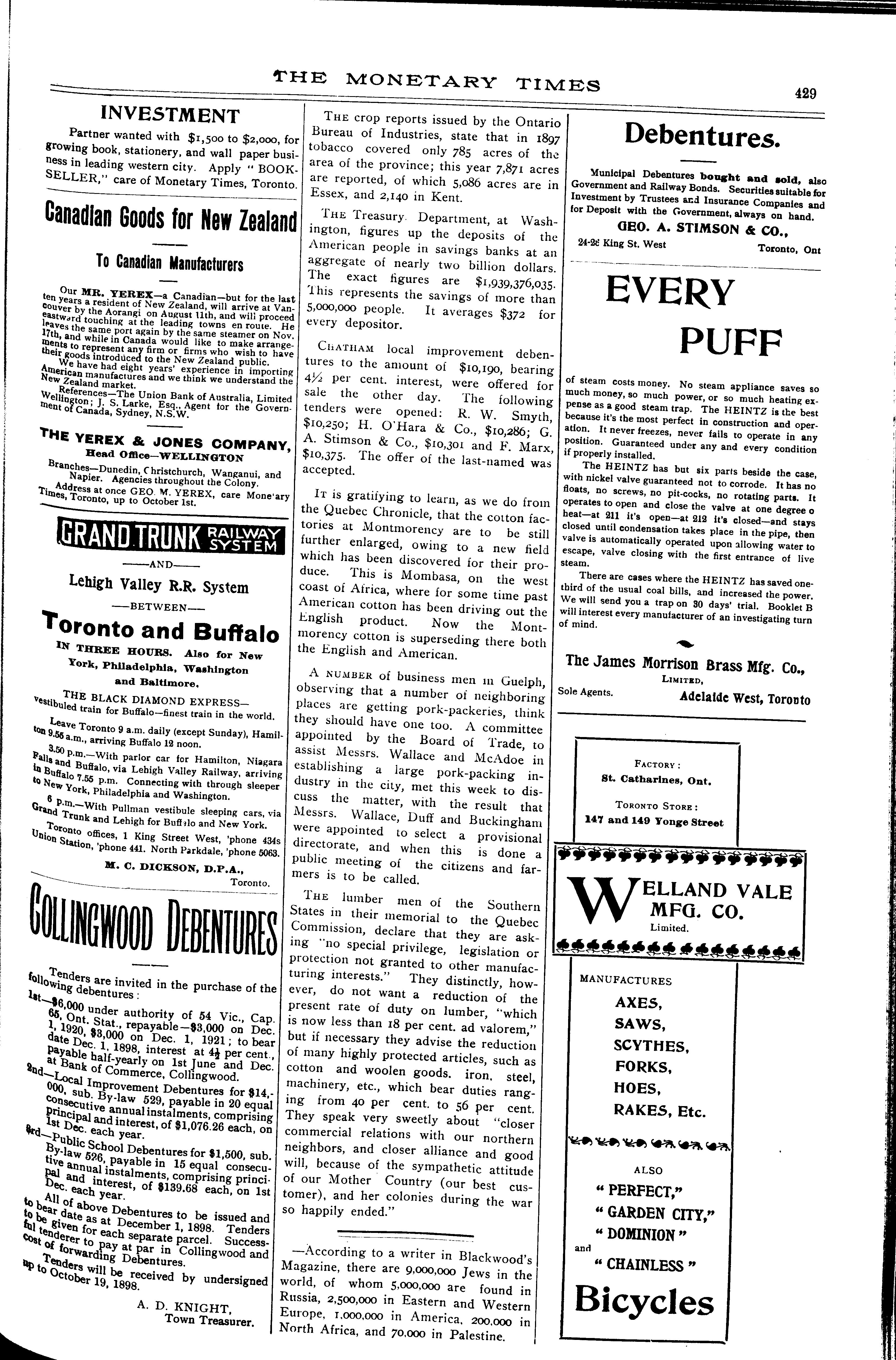 The monetary times, trade review and insurance chronicle : [Vol. 32, no. 14 (Sept. 30, 1898)]