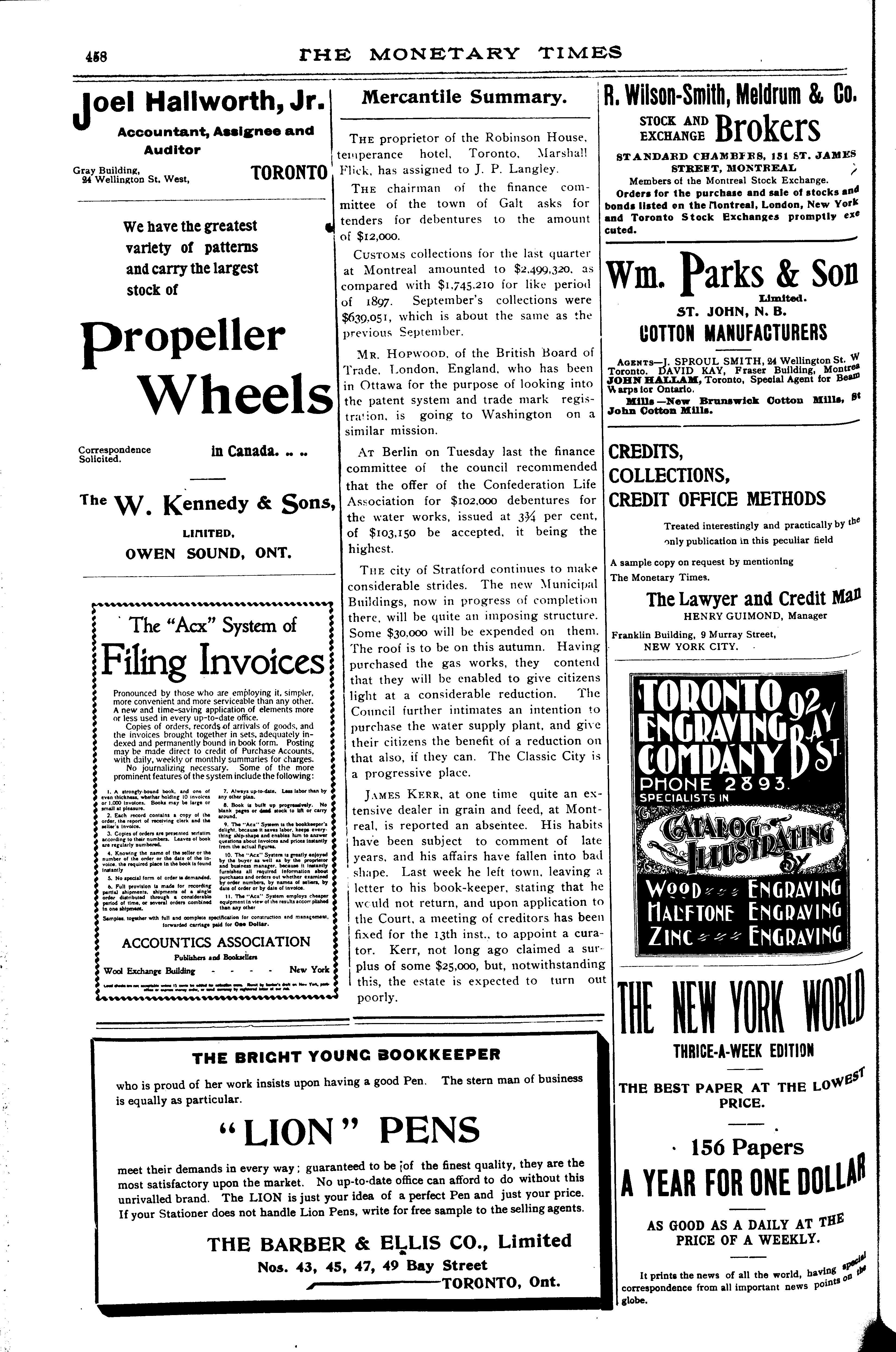 The monetary times, trade review and insurance chronicle : [Vol. 32, no. 15 (Oct. 7, 1898)]