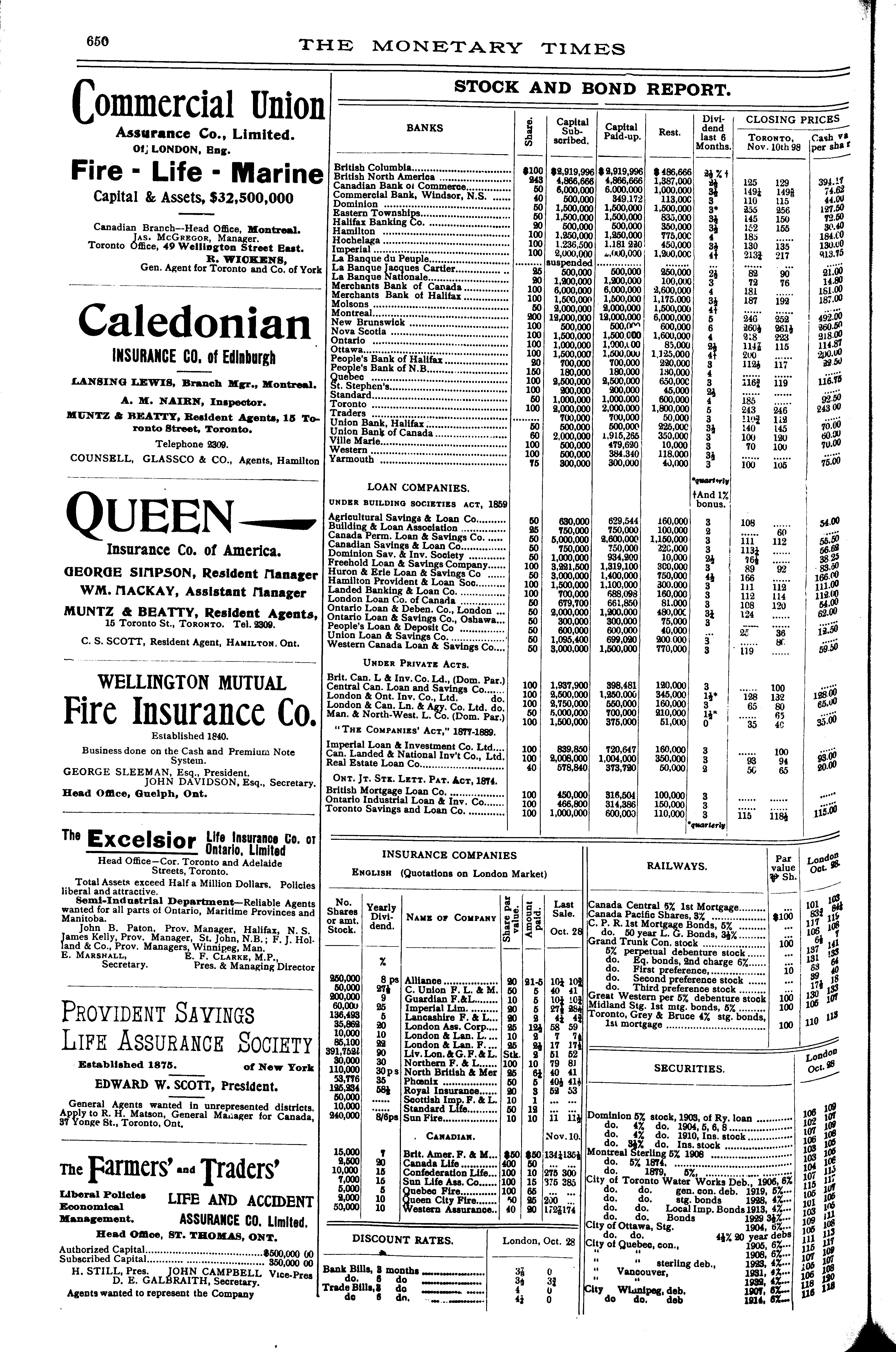 The monetary times, trade review and insurance chronicle : [Vol. 32, no. 20 (Nov. 11, 1898)]