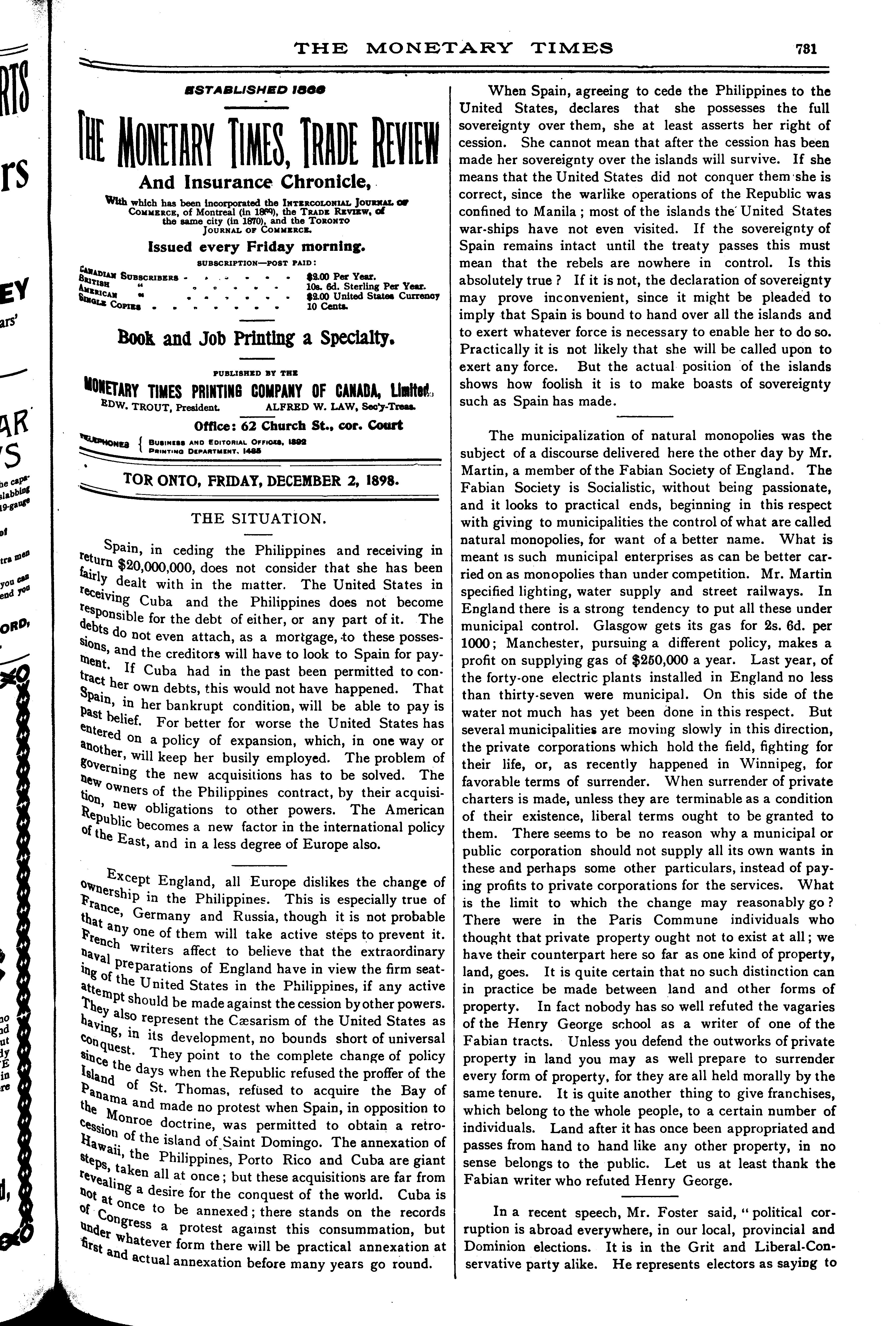 The monetary times, trade review and insurance chronicle : [Vol. 32, no. 23 (Dec. 2, 1898)]