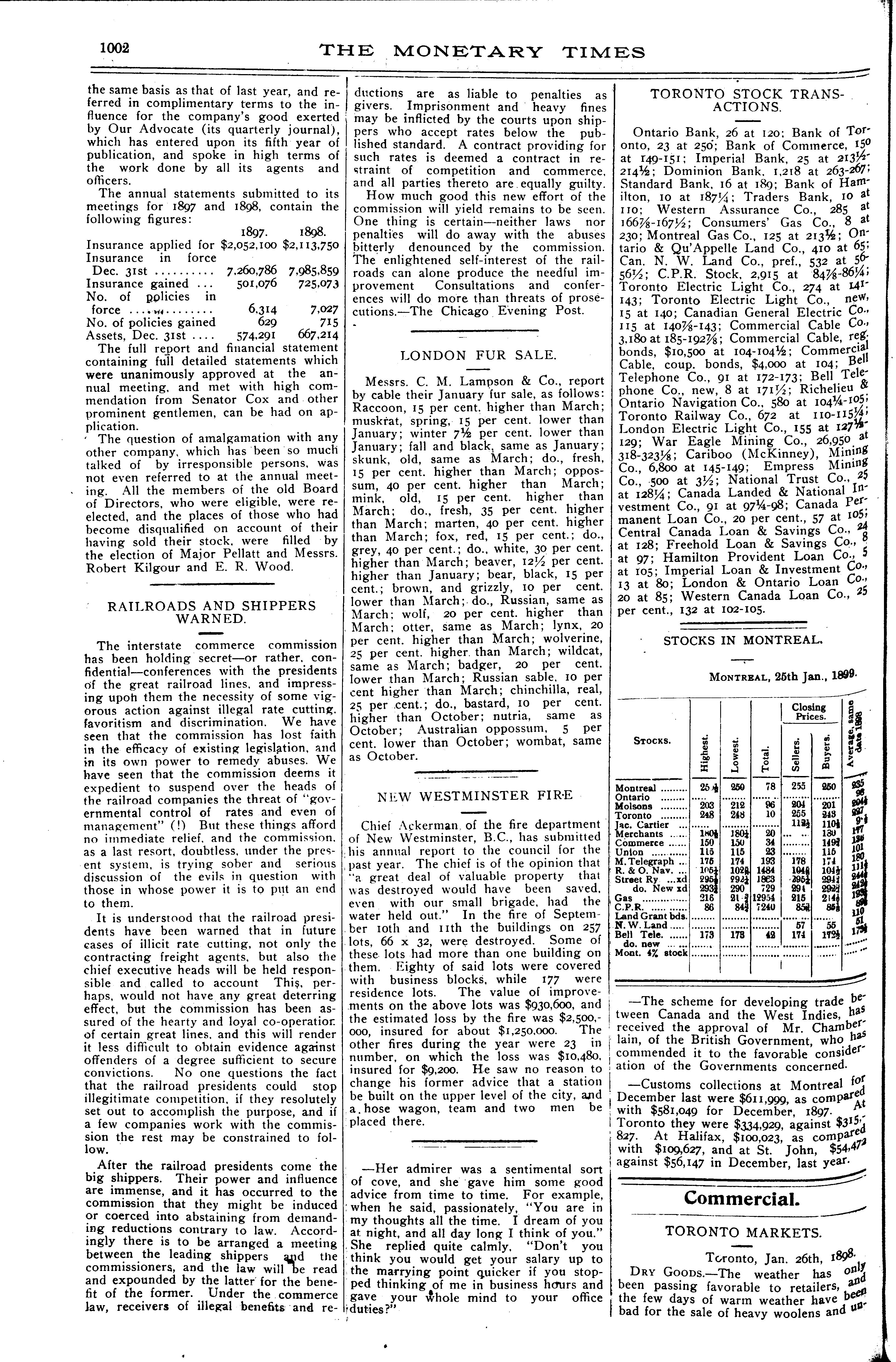 The monetary times, trade review and insurance chronicle : [Vol. 32, no. 31 (Jan. 27, 1899)]