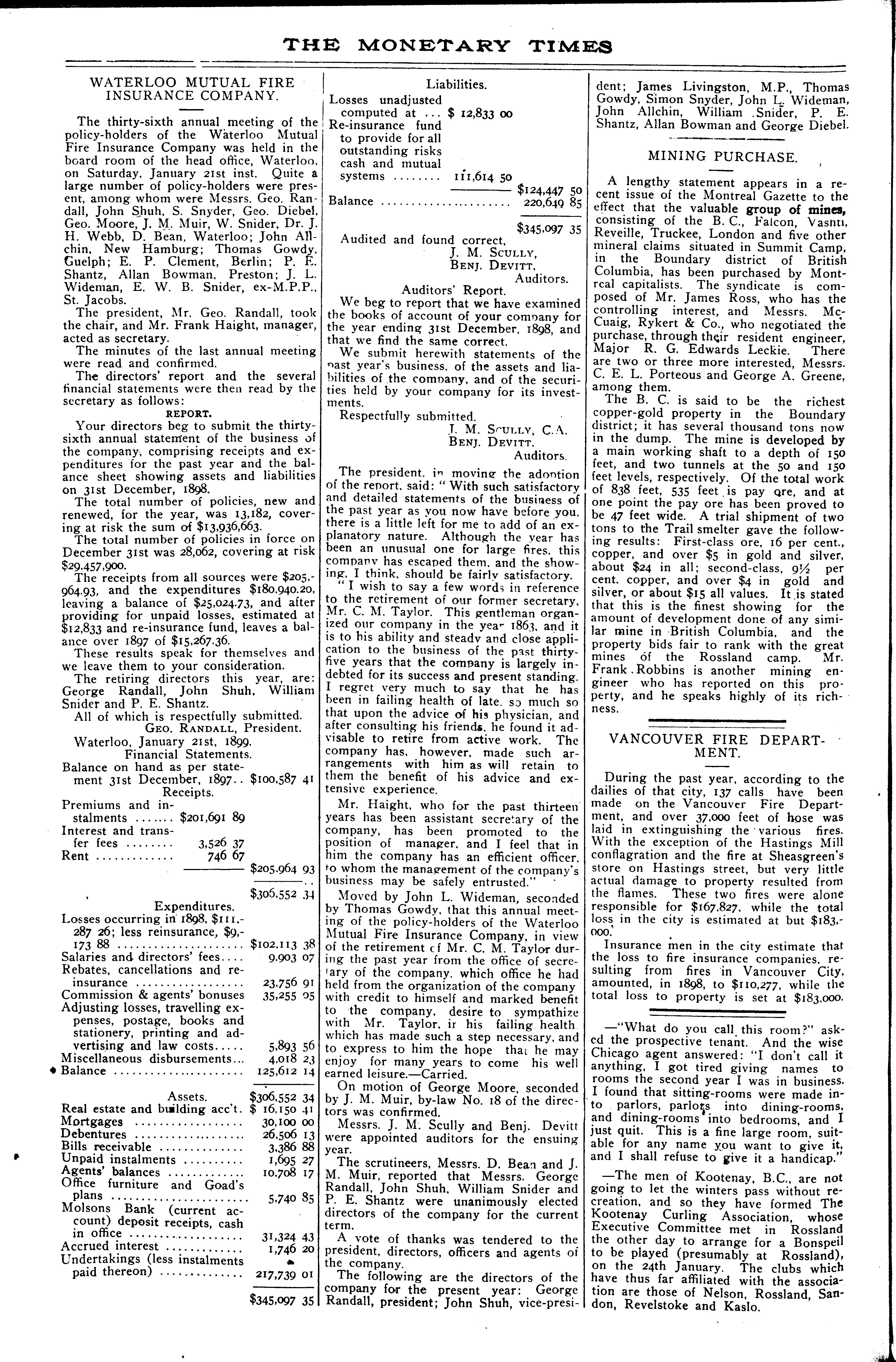 The monetary times, trade review and insurance chronicle : [Vol. 32, no. 31 (Jan. 27, 1899)]