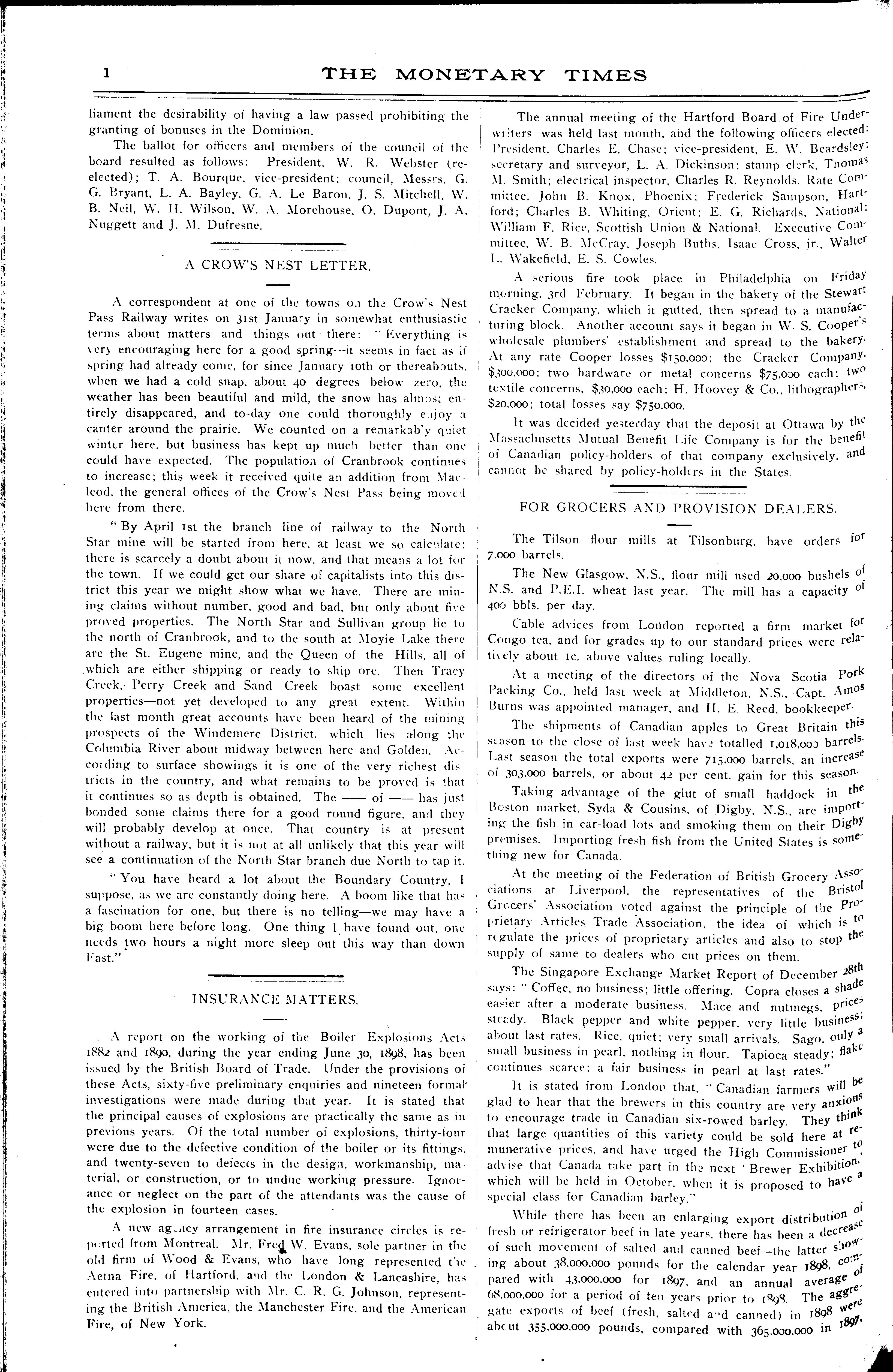 The monetary times, trade review and insurance chronicle : [Vol. 32, no. 33 (Feb. 10, 1899)]