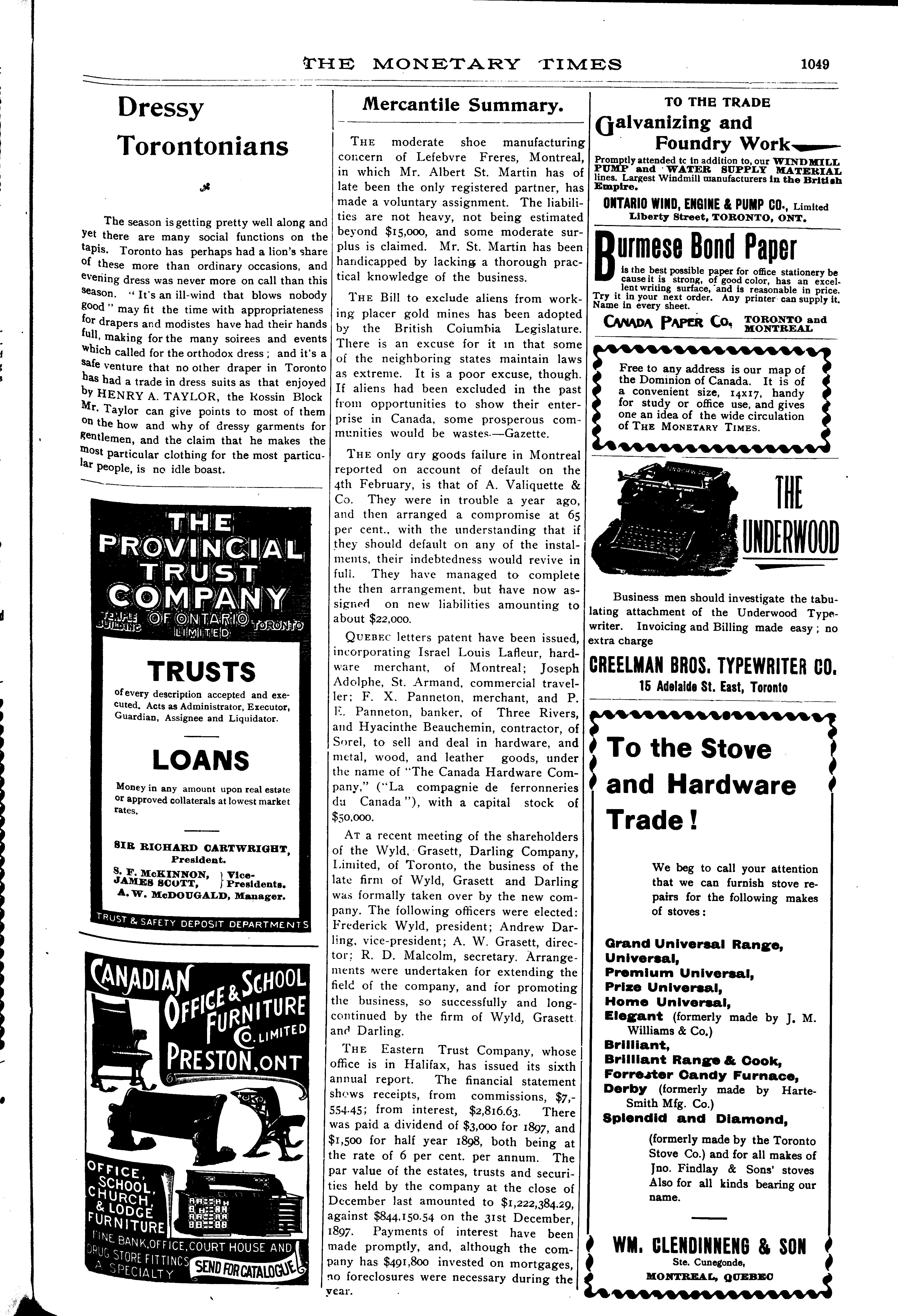 The monetary times, trade review and insurance chronicle : [Vol. 32, no. 33 (Feb. 10, 1899)]