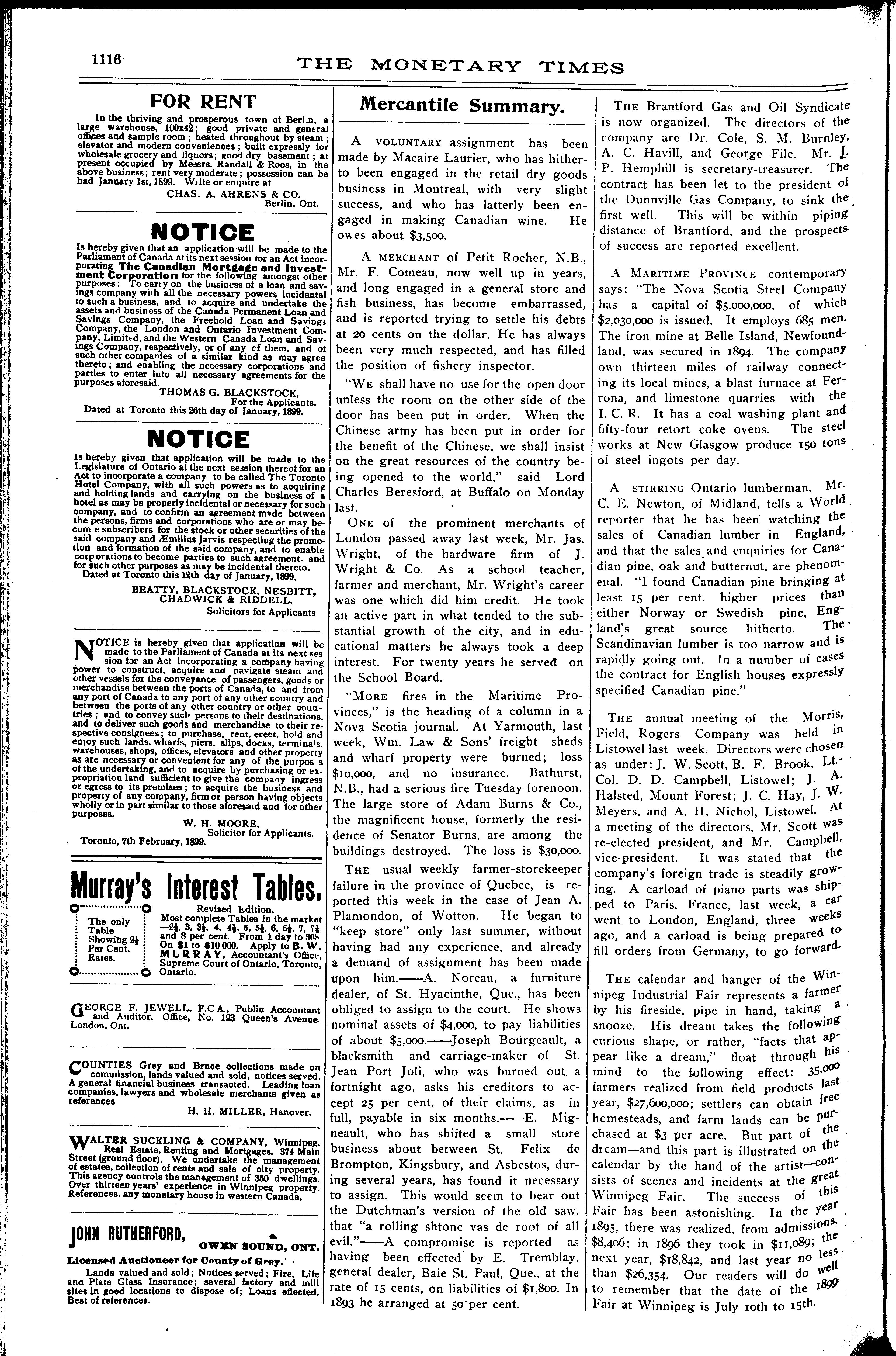 The monetary times, trade review and insurance chronicle : [Vol. 32, no. 35 (Feb. 24, 1899)]