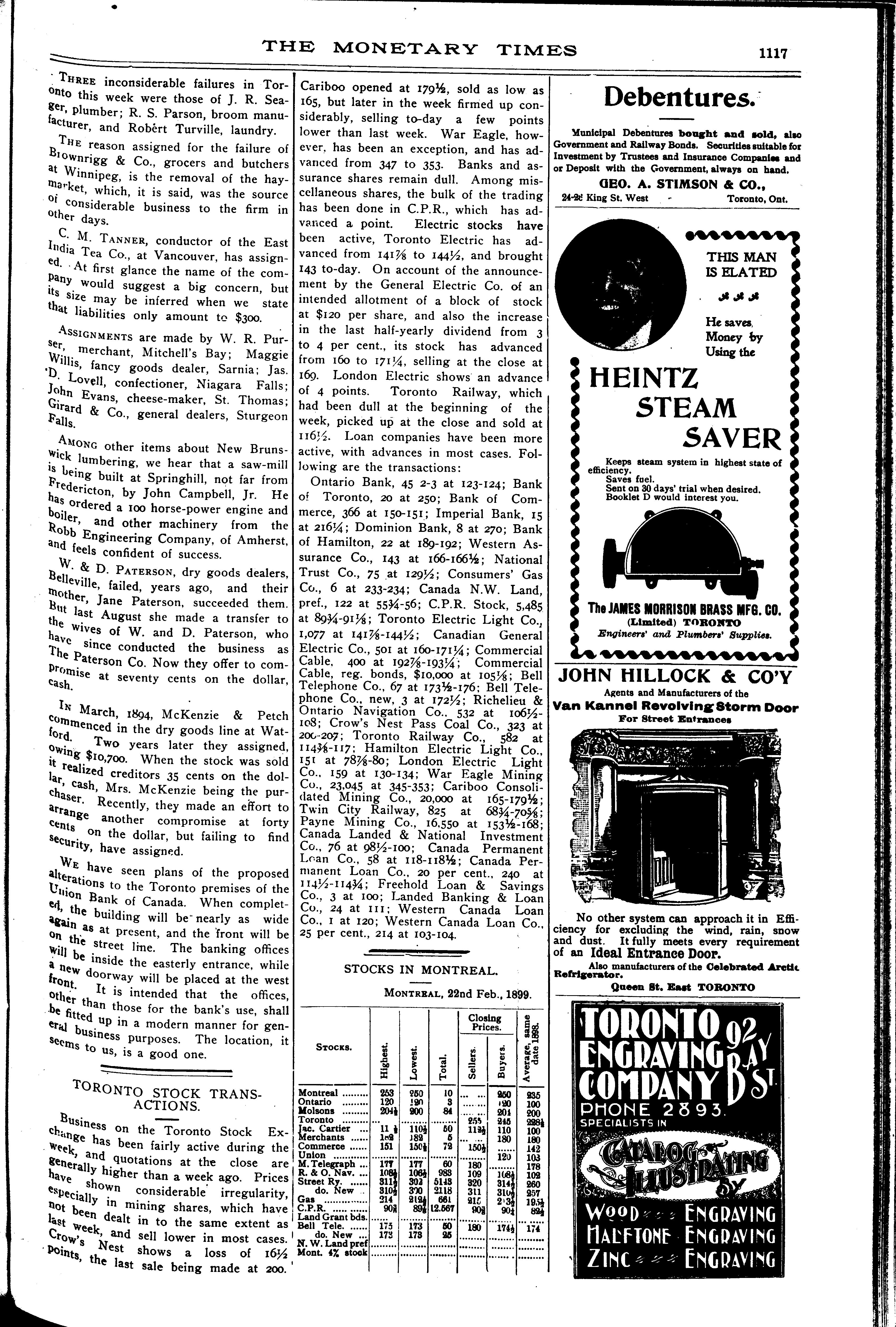 The monetary times, trade review and insurance chronicle : [Vol. 32, no. 35 (Feb. 24, 1899)]