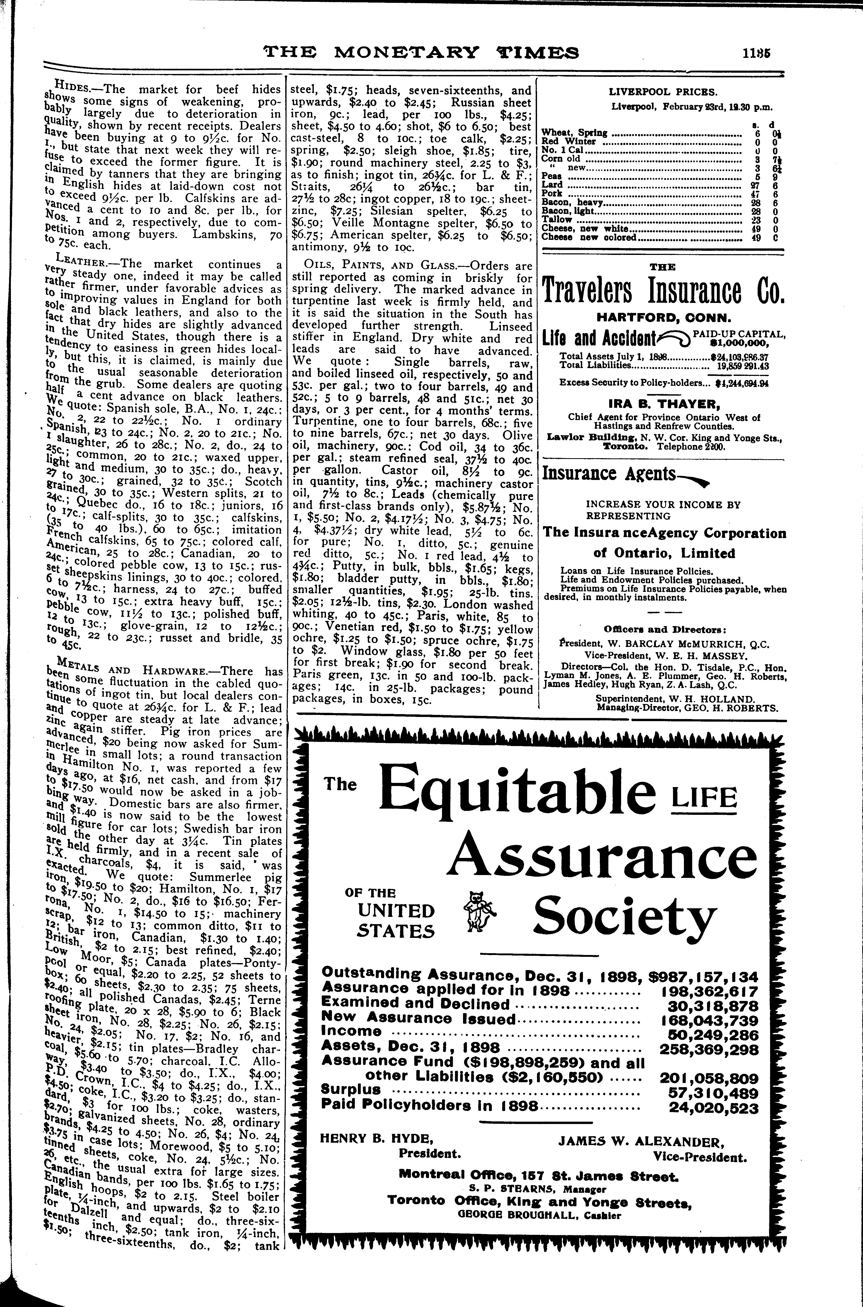 The monetary times, trade review and insurance chronicle : [Vol. 32, no. 35 (Feb. 24, 1899)]
