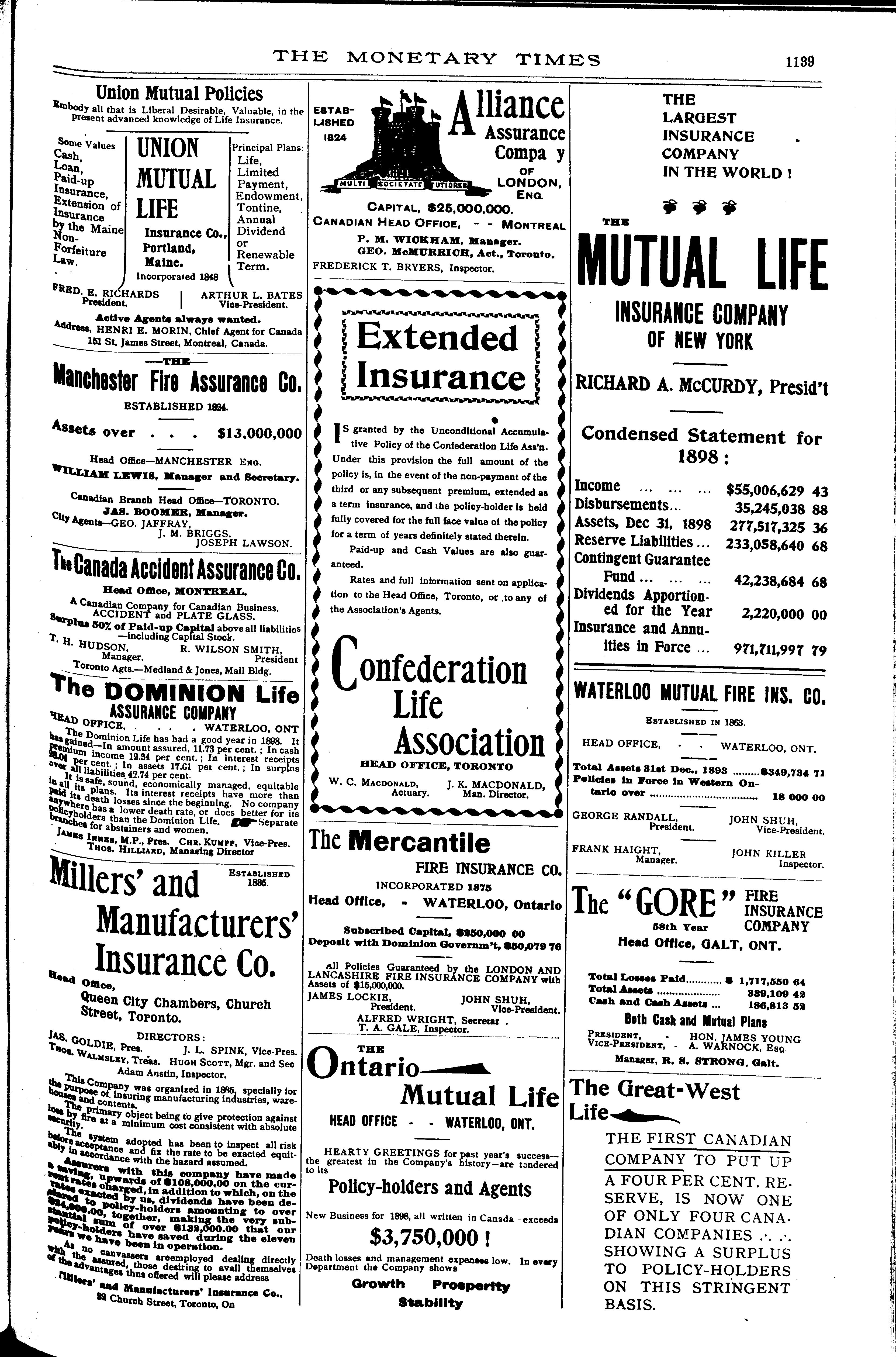 Toronto : Monetary Times Print. Co. of Canada, [1899]; 37 images avec recherche en texte intégral