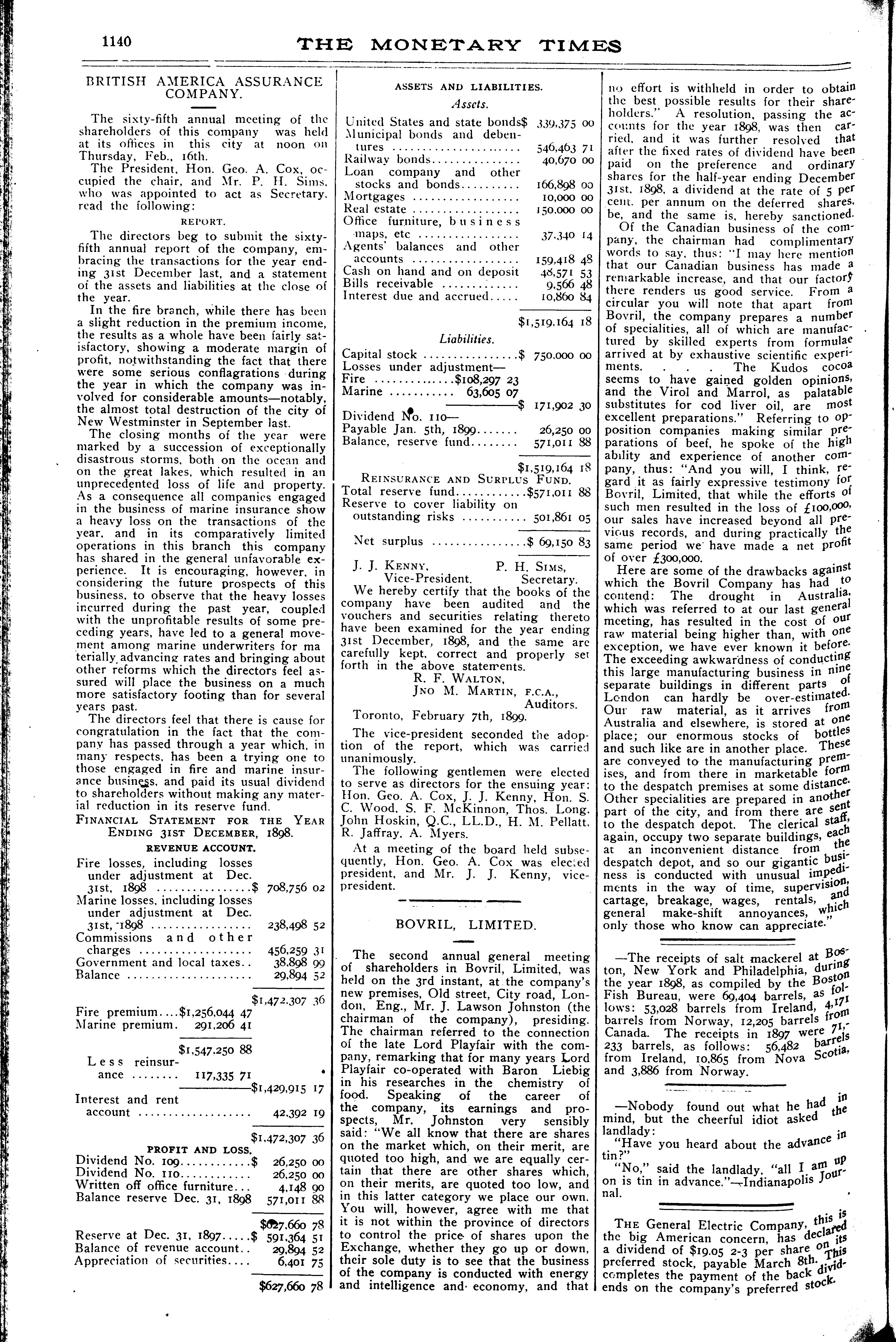 The monetary times, trade review and insurance chronicle : [Vol. 32, no. 35 (Feb. 24, 1899)]