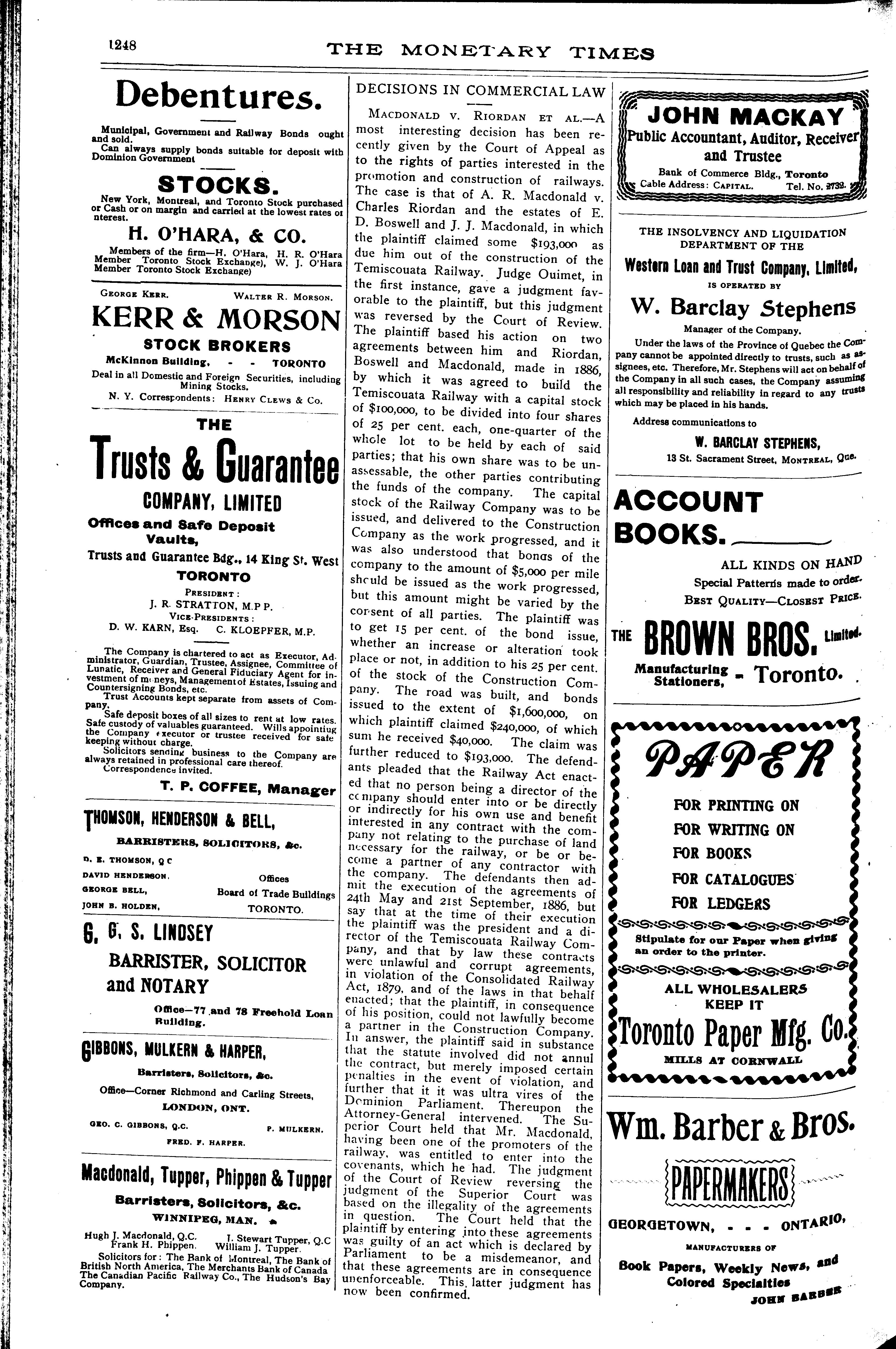 Toronto : Monetary Times Print. Co. of Canada, [1899]; 33 images avec recherche en texte intégral