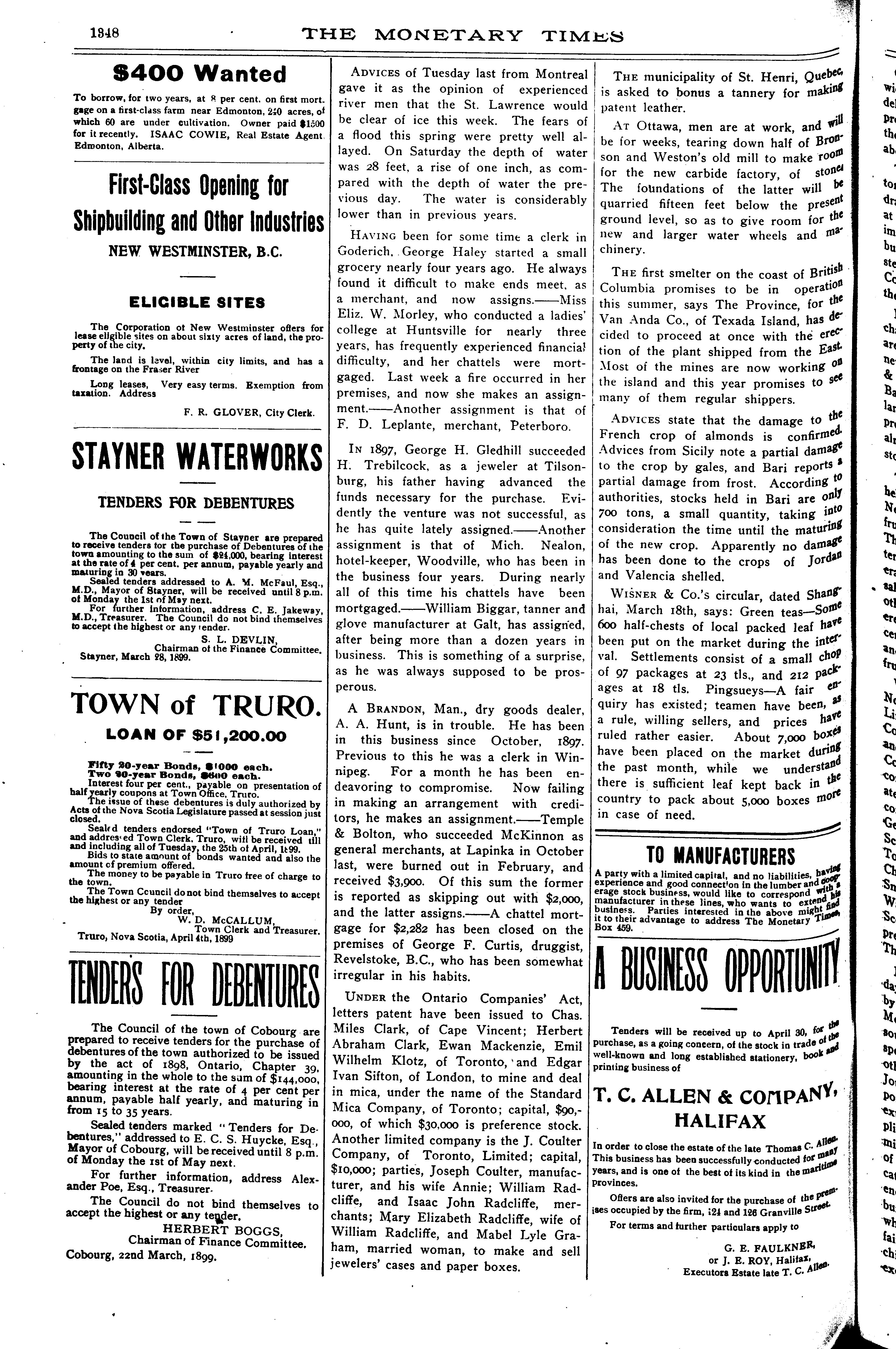 - The monetary times, trade review and insurance chronicle [Vol. 32, no. 41 [i.e. 42] (Apr. 14, 1899)]