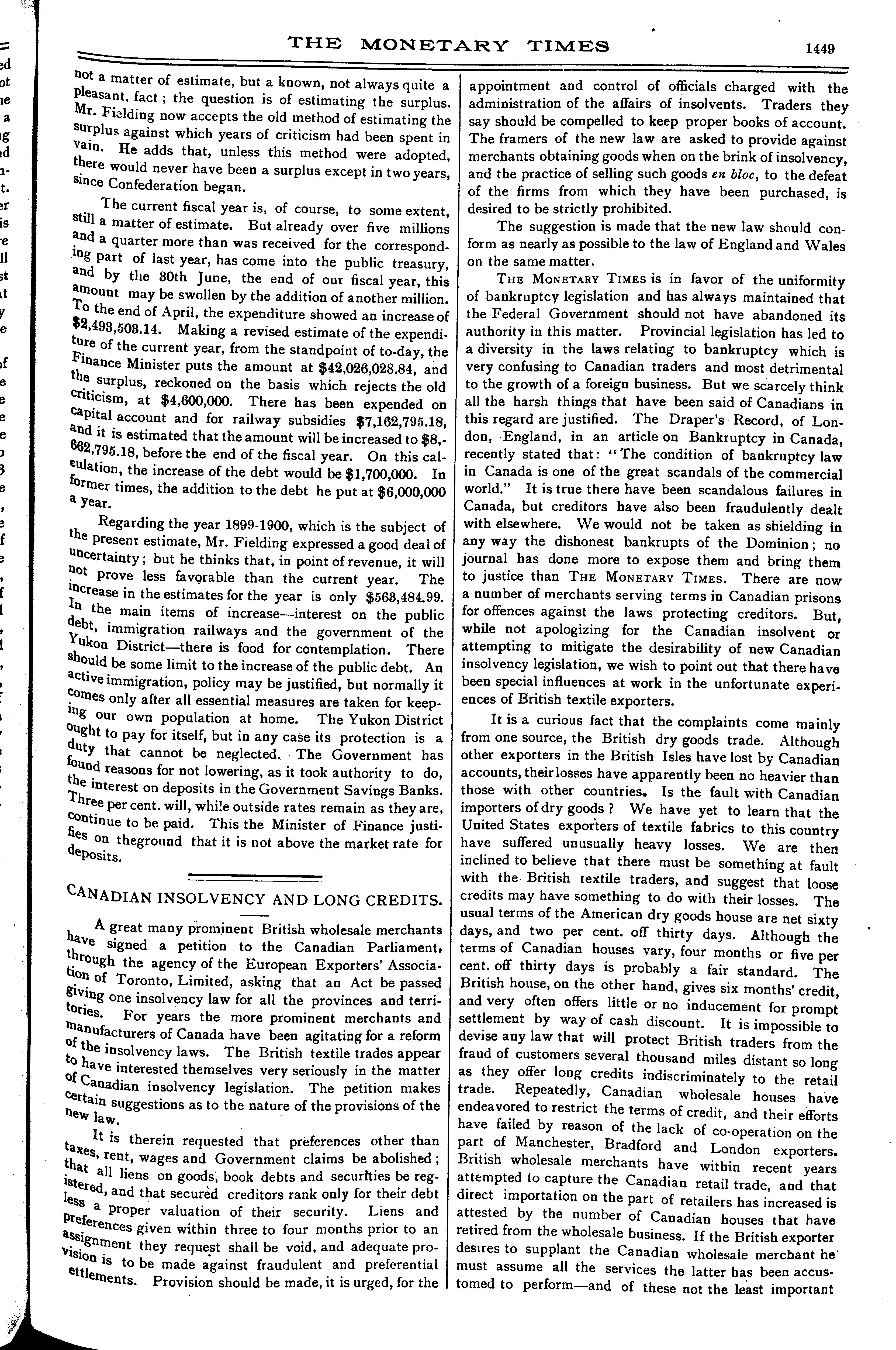 - The monetary times, trade review and insurance chronicle [Vol. 32, no. 44 [i.e. 45] (May 5, 1899)]