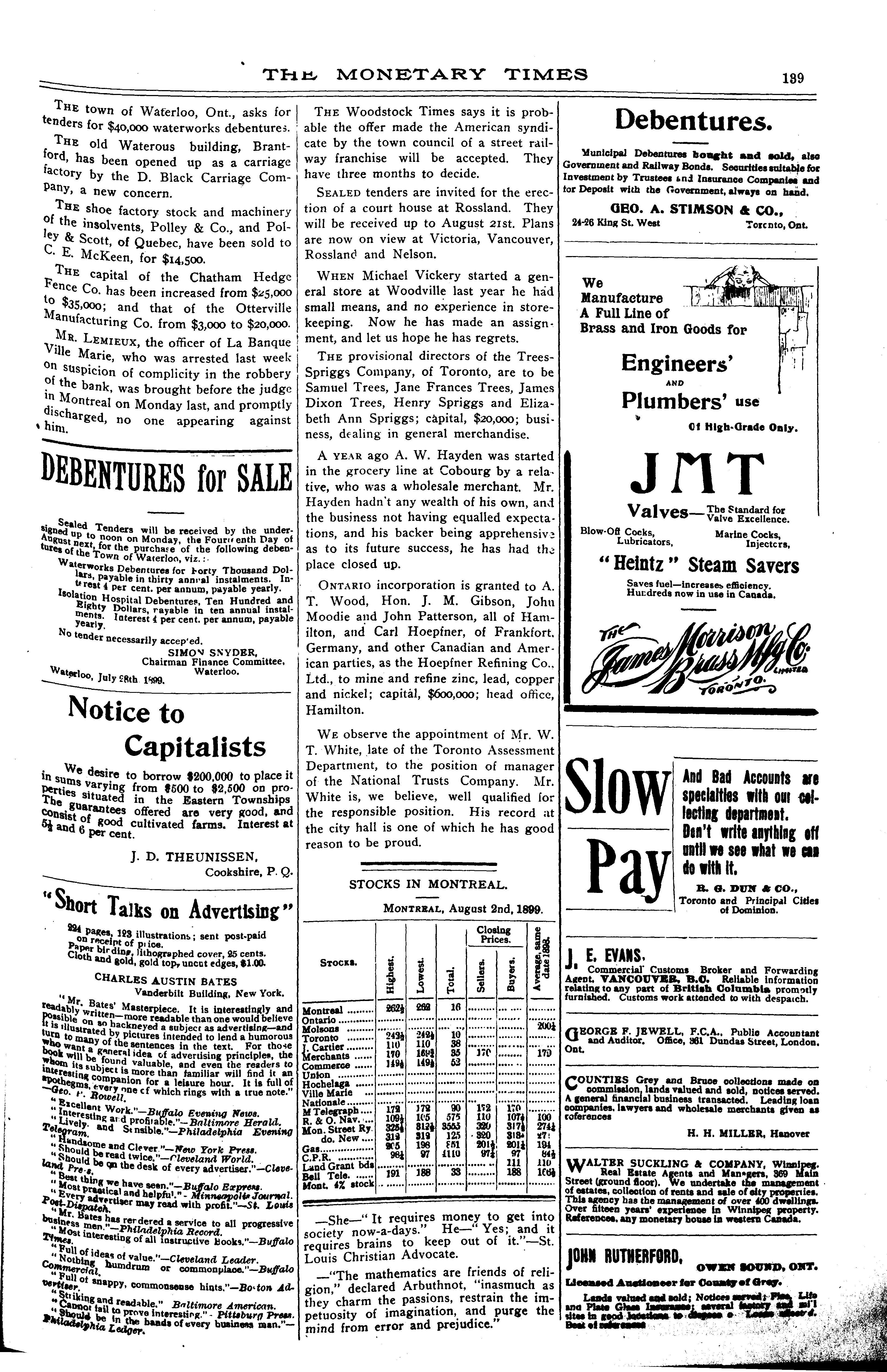The monetary times, trade review and insurance chronicle : [Vol. 33, no. 5 (Aug. 4, 1899)]