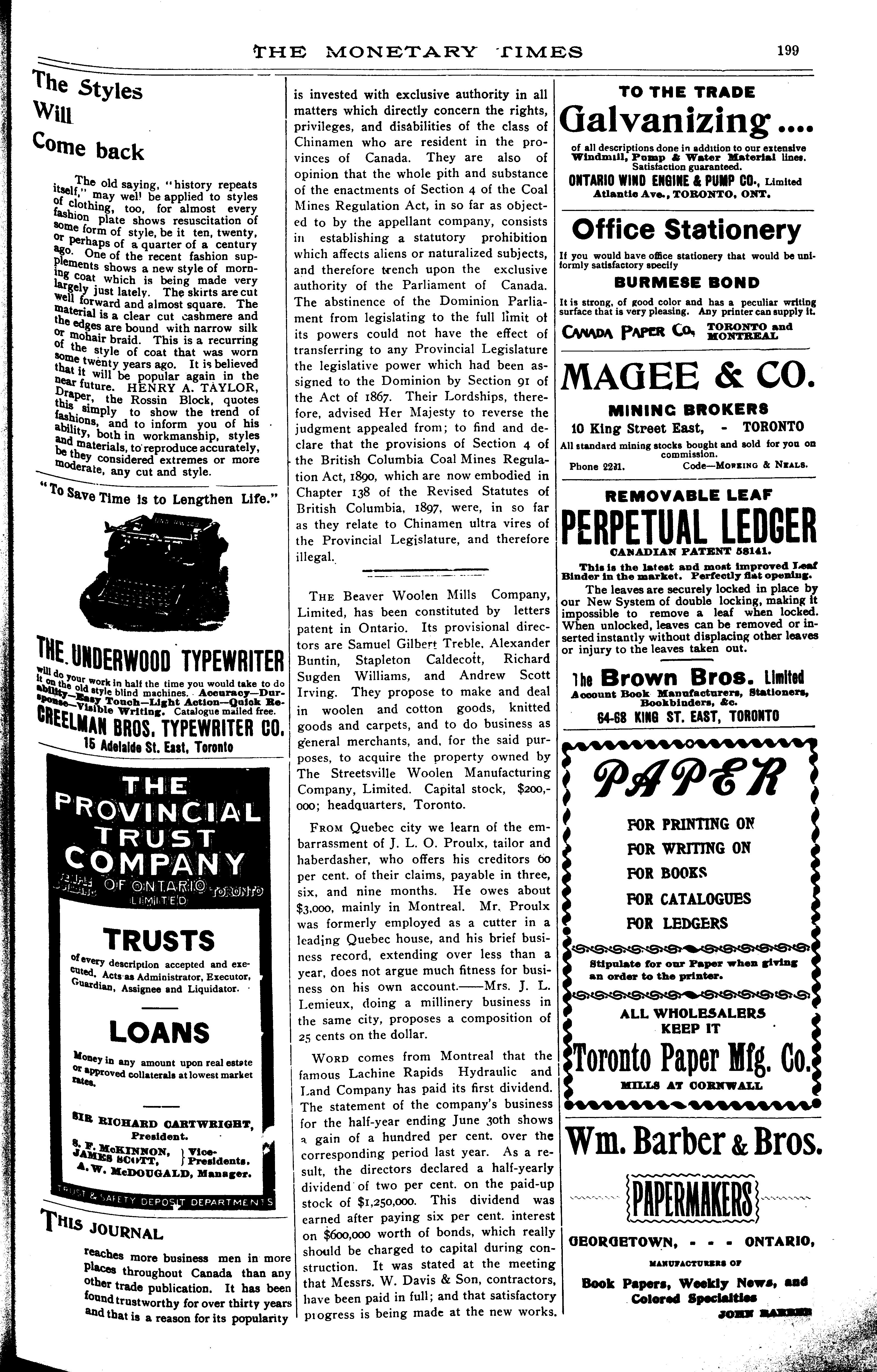 The monetary times, trade review and insurance chronicle : [Vol. 33, no. 7 (Aug. 18, 1899)]