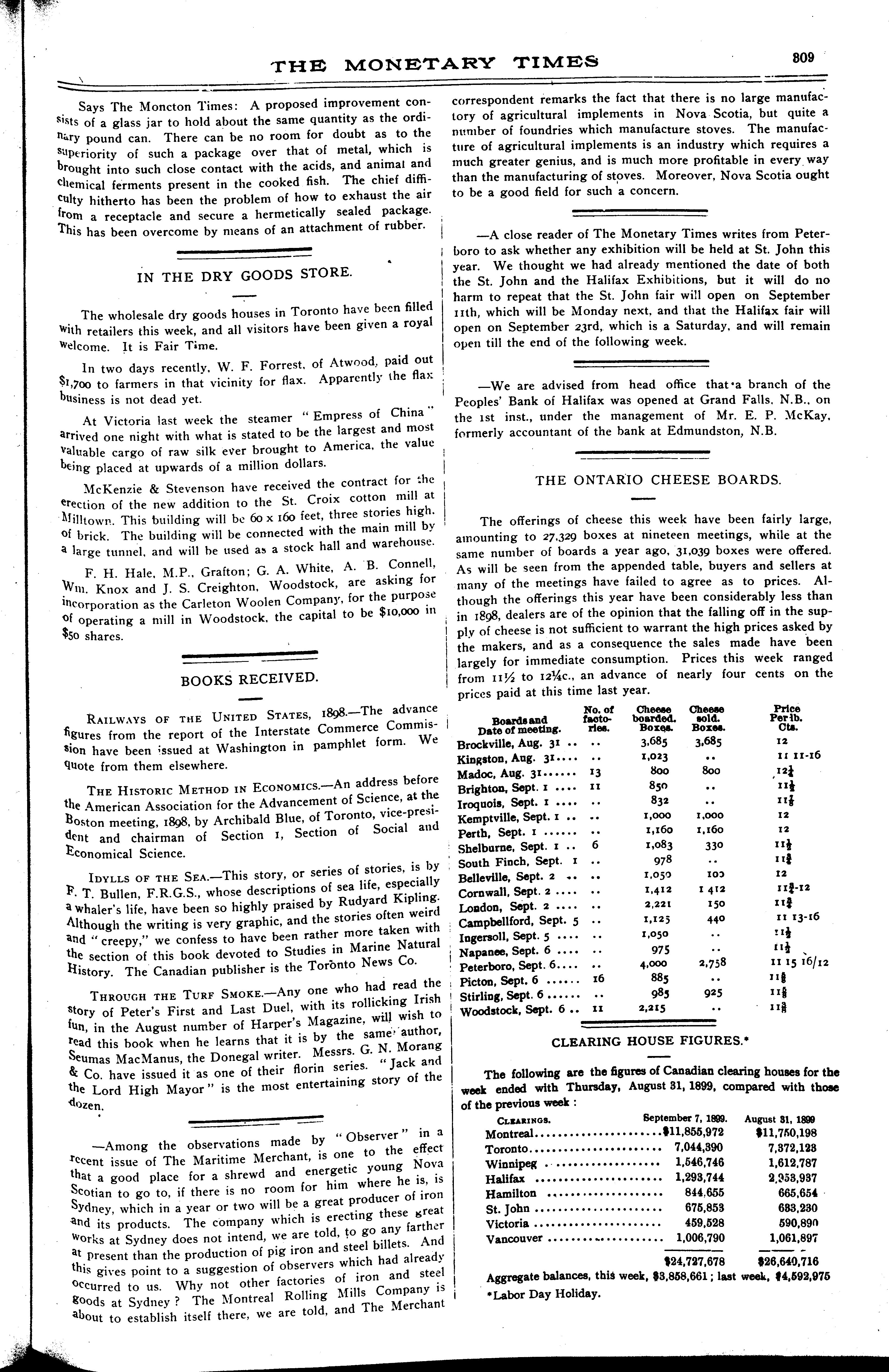 The monetary times, trade review and insurance chronicle : [Vol. 33, no. 10 (Sept. 8, 1899)]