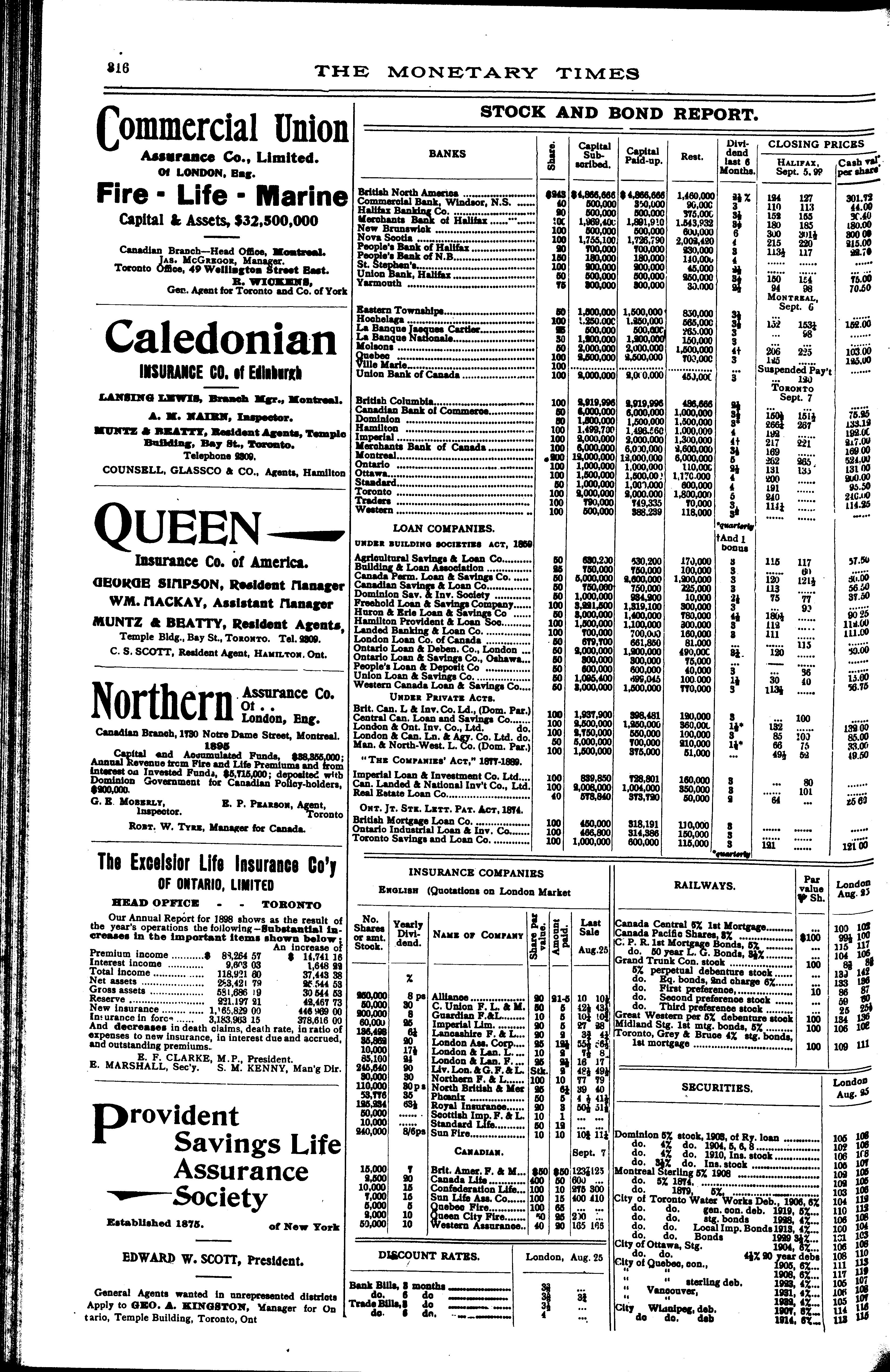 The monetary times, trade review and insurance chronicle : [Vol. 33, no. 10 (Sept. 8, 1899)]