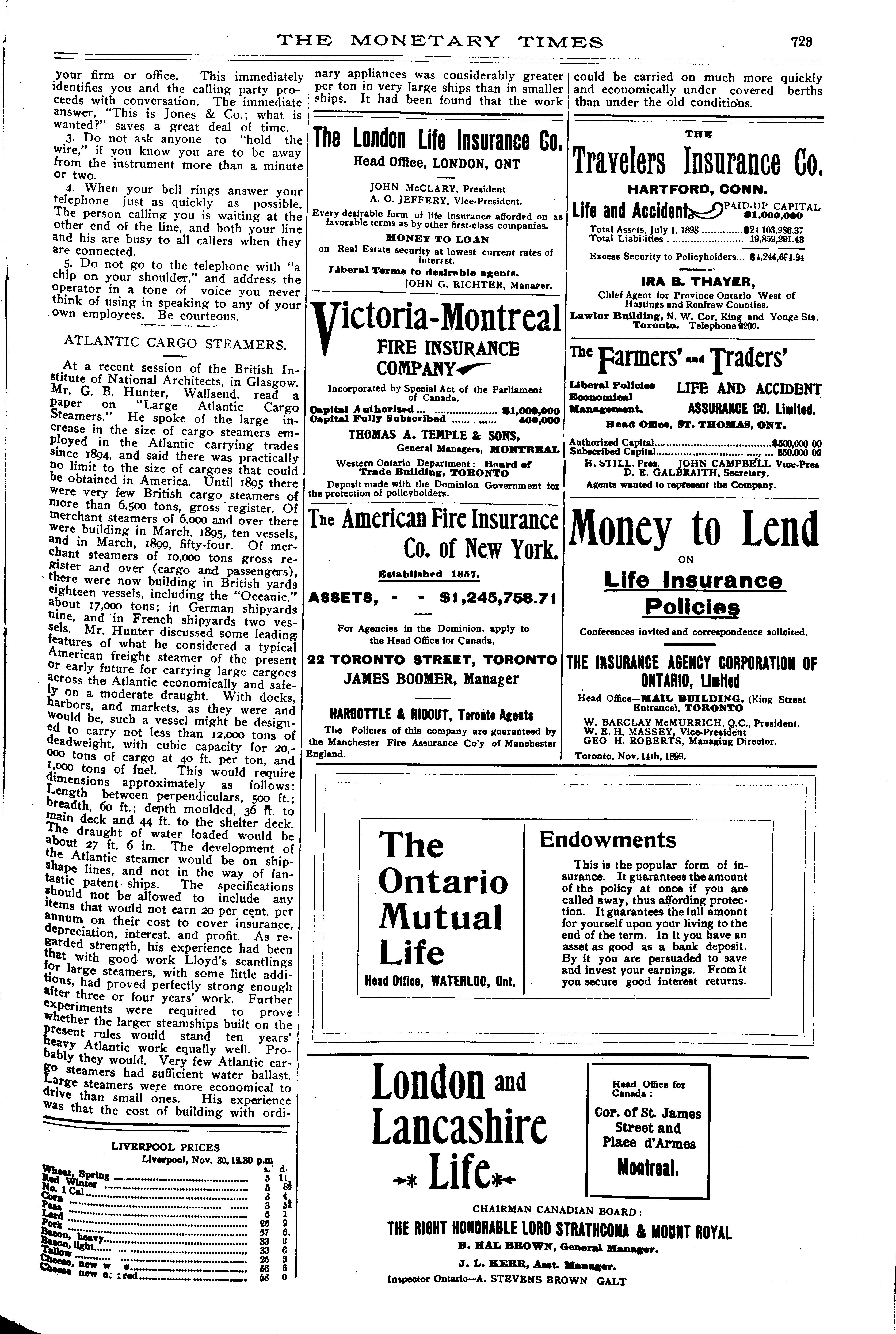 The monetary times, trade review and insurance chronicle : [Vol. 33, no. 22 (Dec. 1, 1899)]