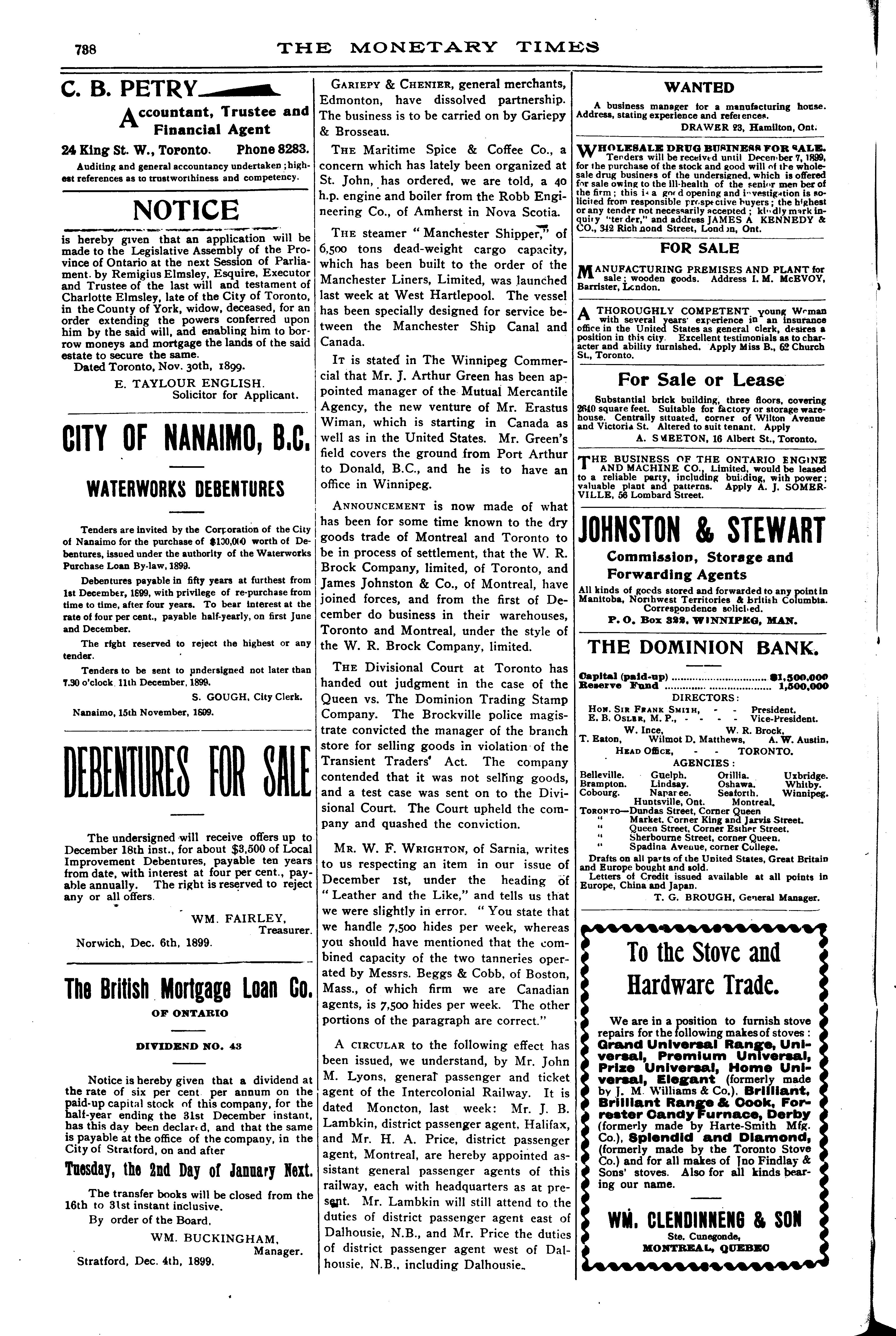 The monetary times, trade review and insurance chronicle : [Vol. 33, no. 23 (Dec. 8, 1899)]