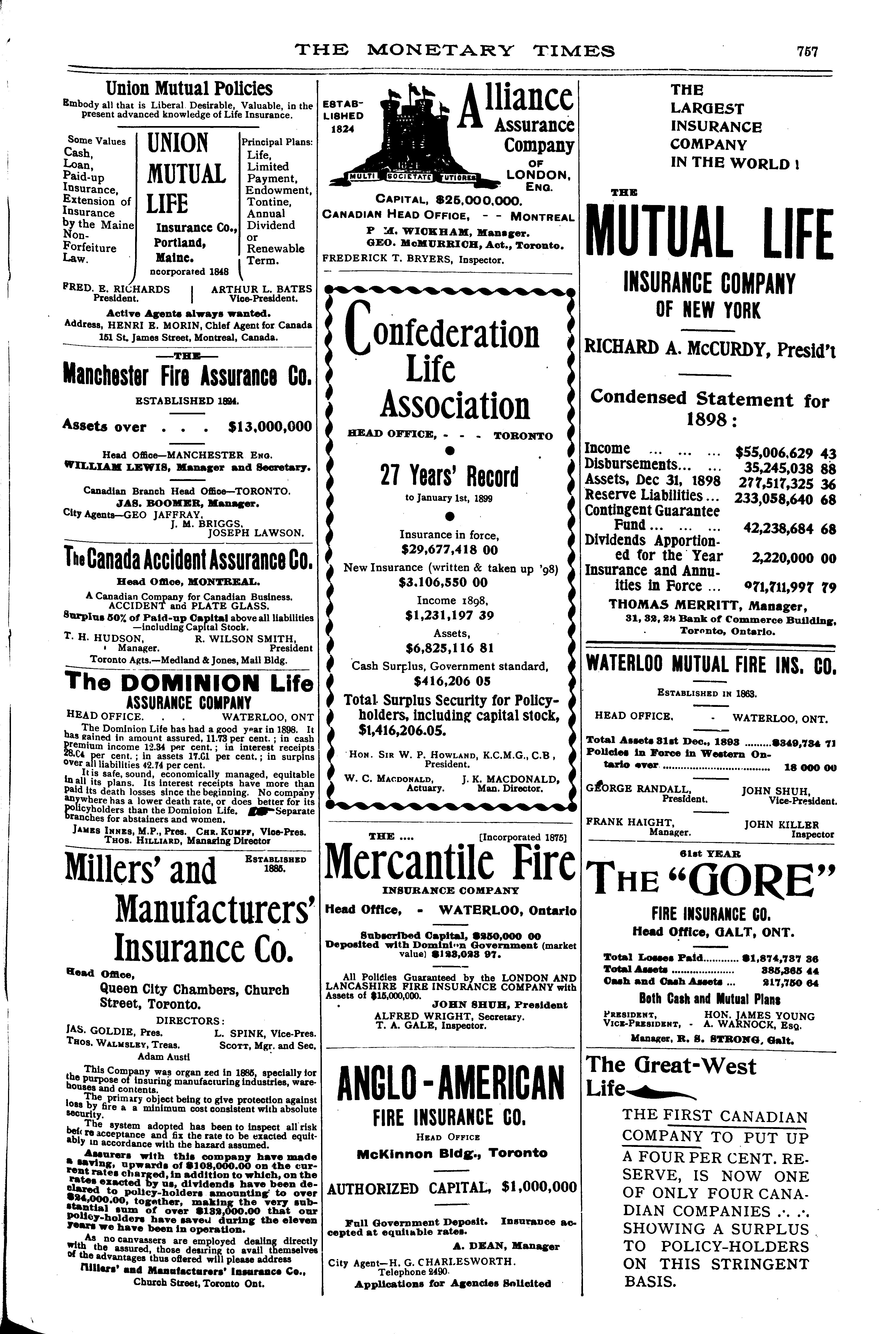 The monetary times, trade review and insurance chronicle : [Vol. 33, no. 23 (Dec. 8, 1899)]