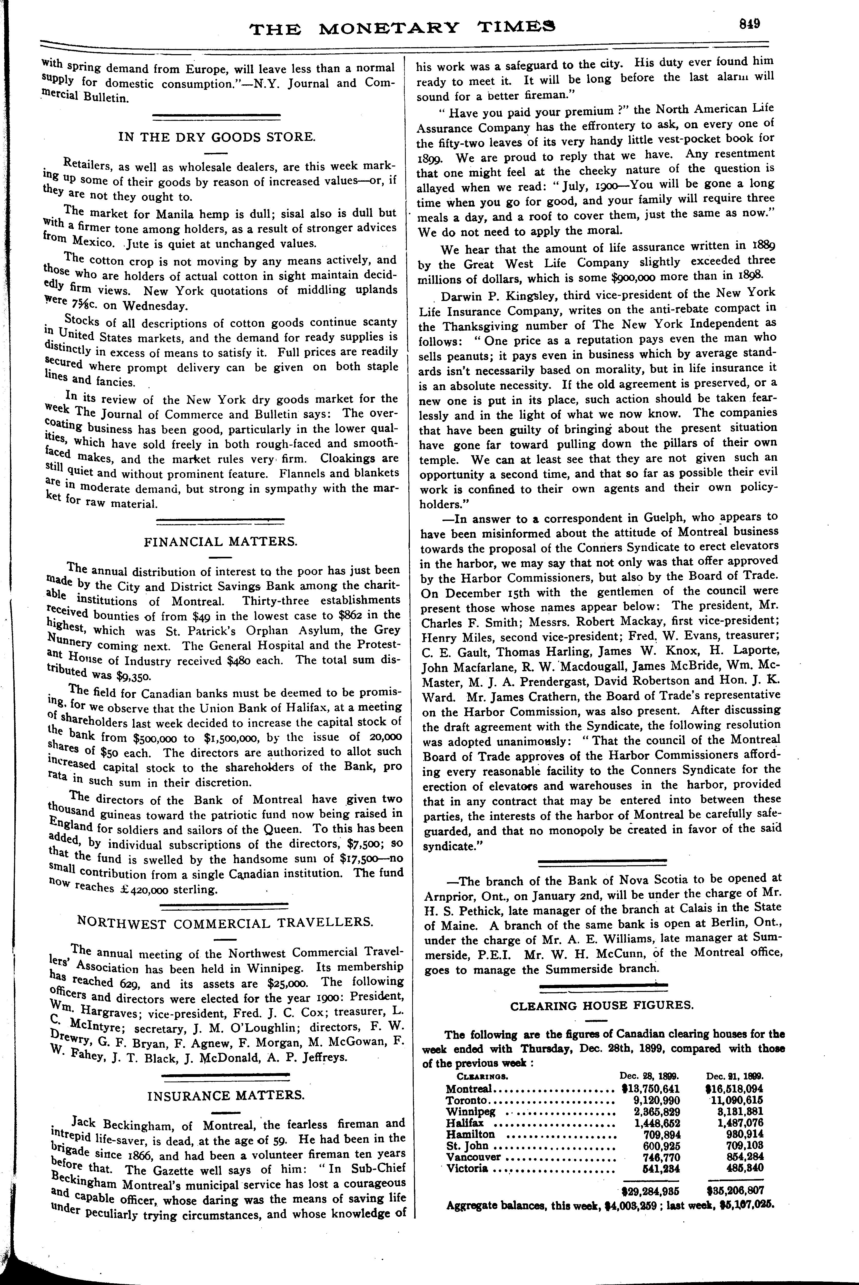 The monetary times, trade review and insurance chronicle : [Vol. 33, no. 26 (Dec. 29, 1899)]