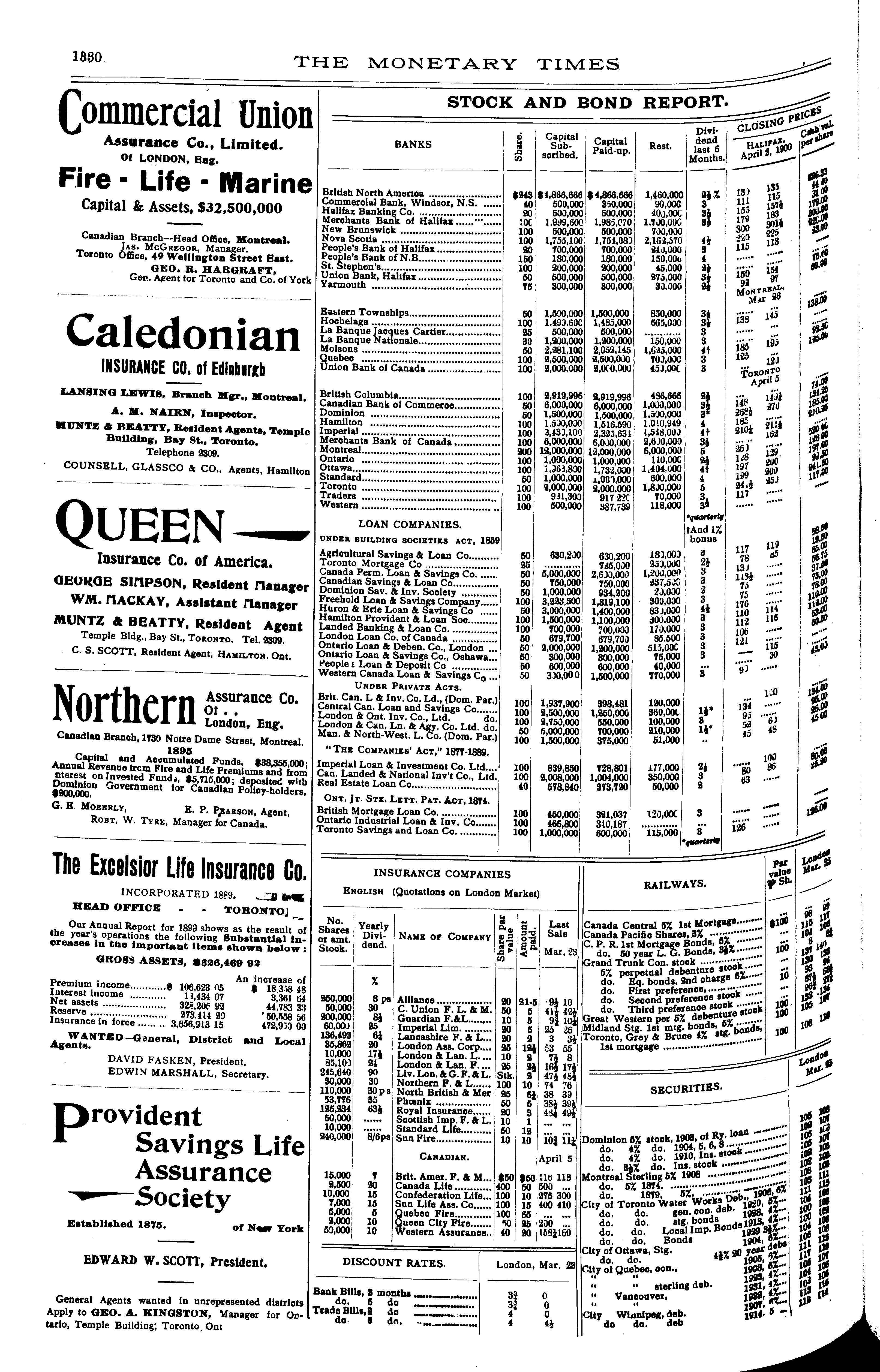 The monetary times, trade review and insurance chronicle : [Vol. 33, no. 40 (Apr. 6, 1900)]