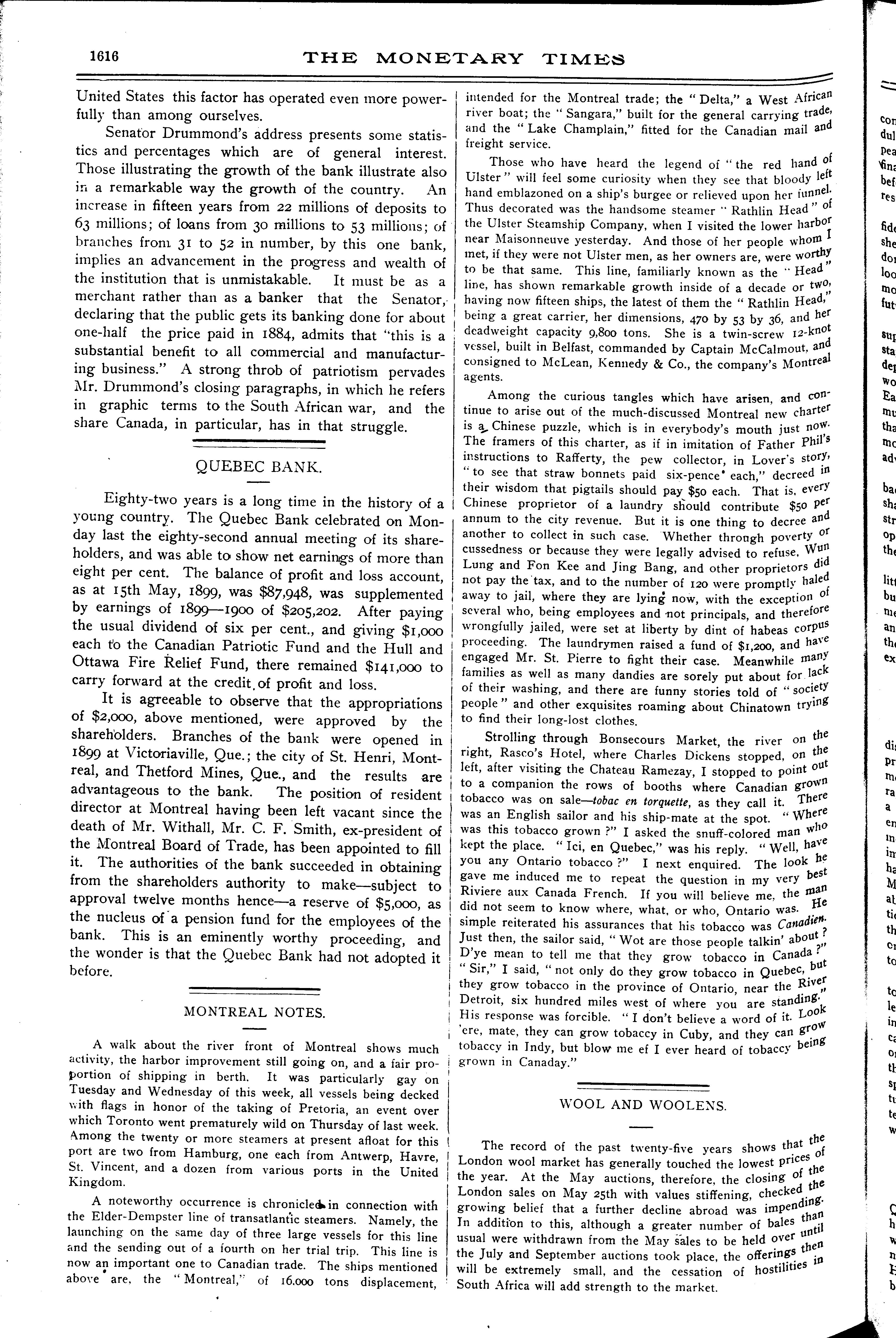 - The monetary times, trade review and insurance chronicle [Vol. 33, no. 50 [i.e. 49] (June 8, 1900)]