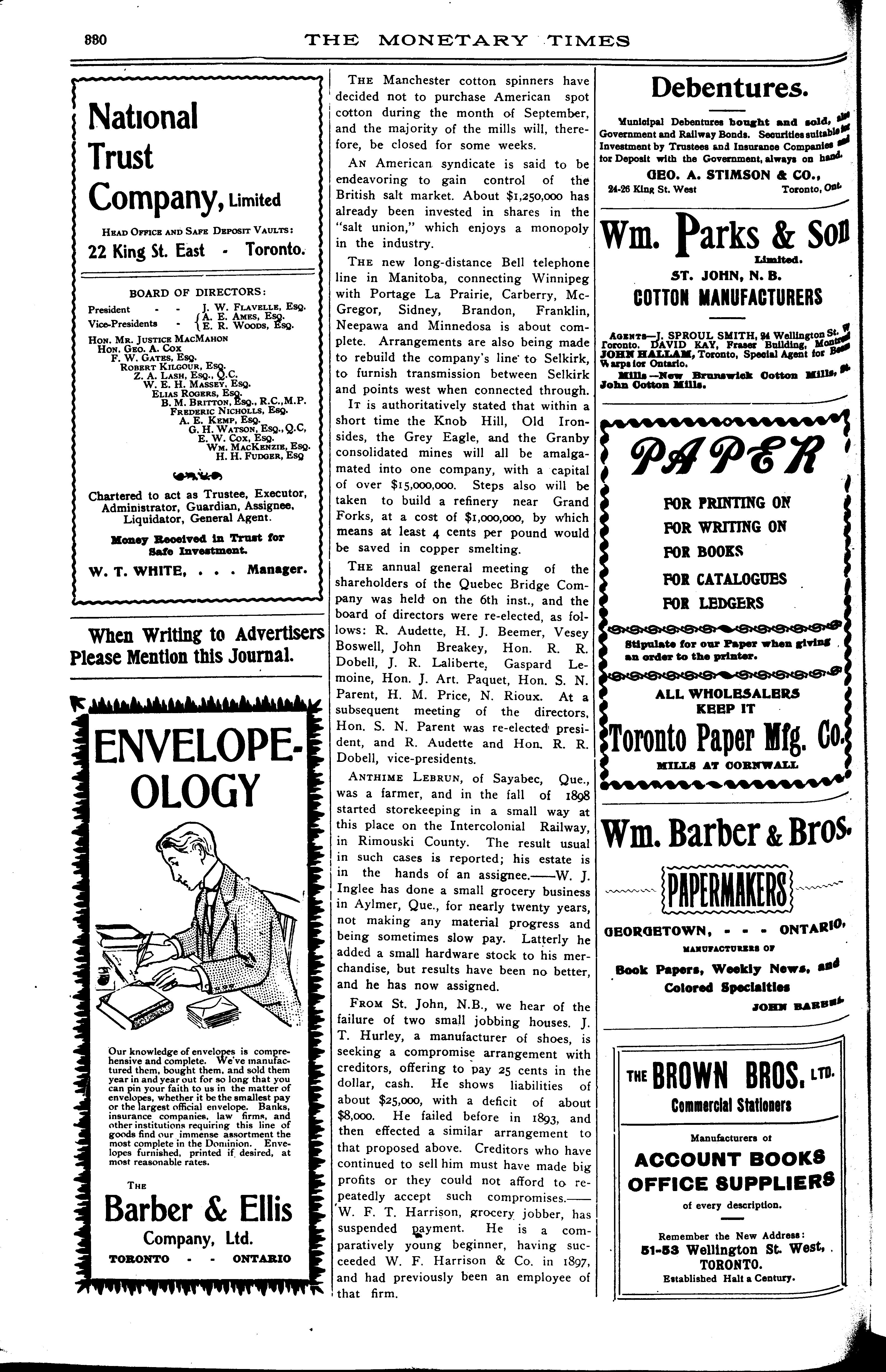The monetary times, trade review and insurance chronicle : [Vol. 34, no. 11 (Sept. 14, 1900)]