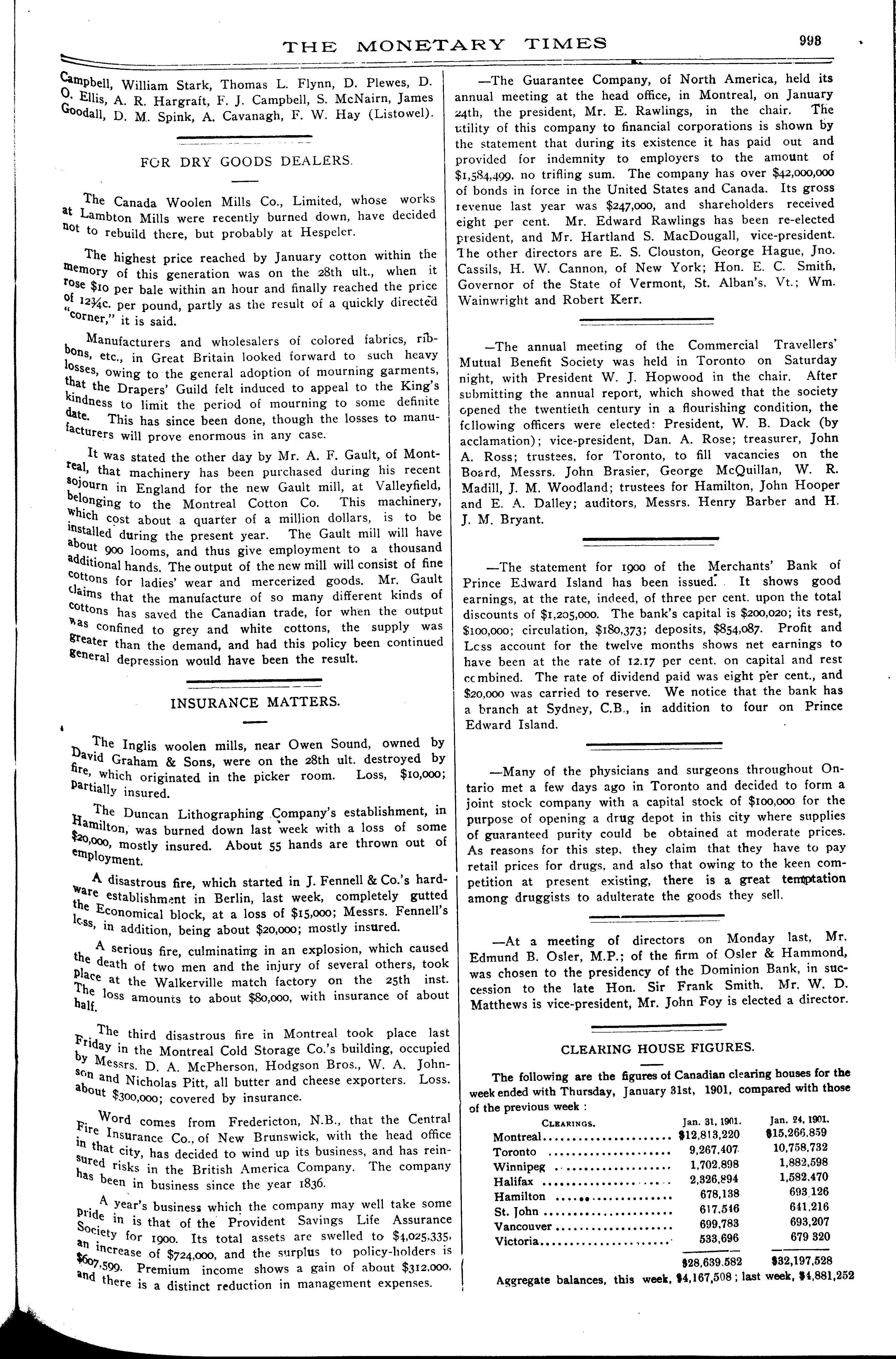The monetary times, trade review and insurance chronicle : [Vol. 34, no. 31 (Feb. 1, 1901)]