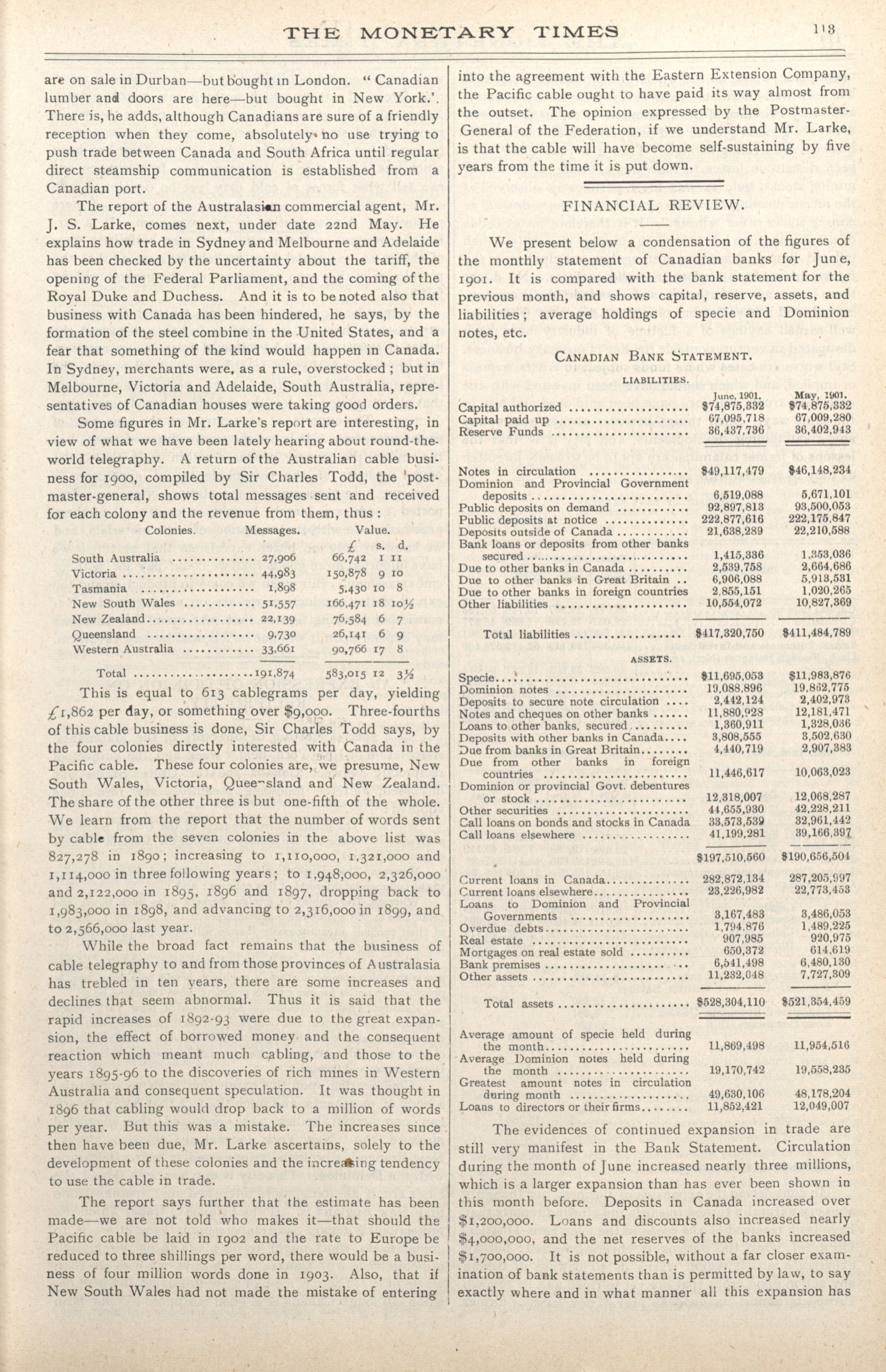 - The Monetary Times, trade review and insurance chronicle. : Vol. XXXV No. 4 (July 26, 1901)