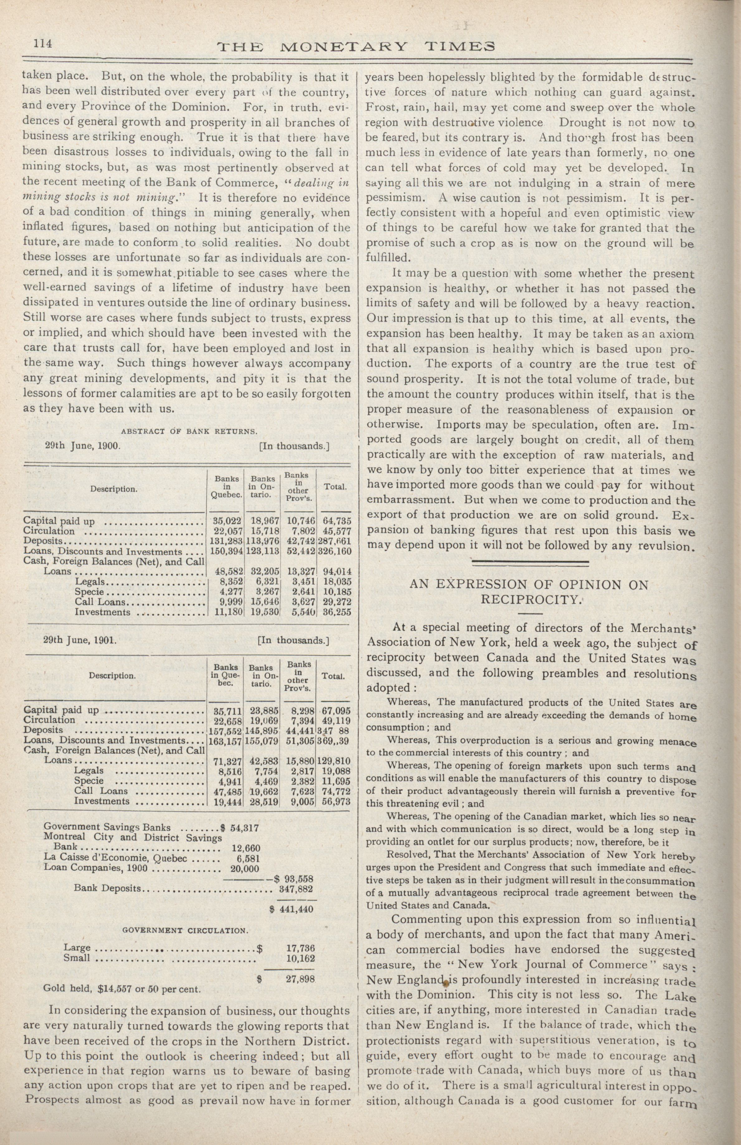 - The Monetary Times, trade review and insurance chronicle. : Vol. XXXV No. 4 (July 26, 1901)