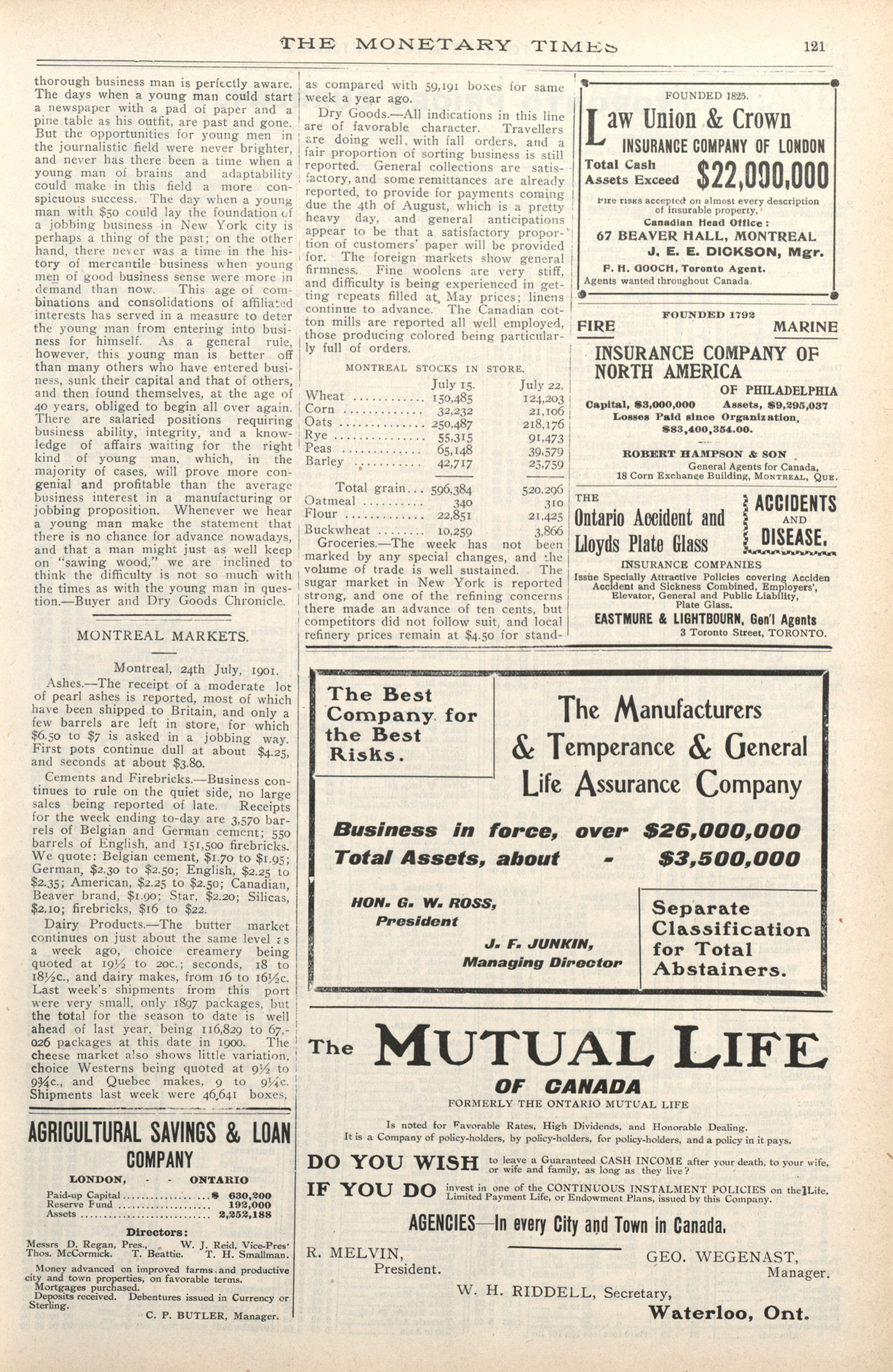 - The Monetary Times, trade review and insurance chronicle. : Vol. XXXV No. 4 (July 26, 1901)