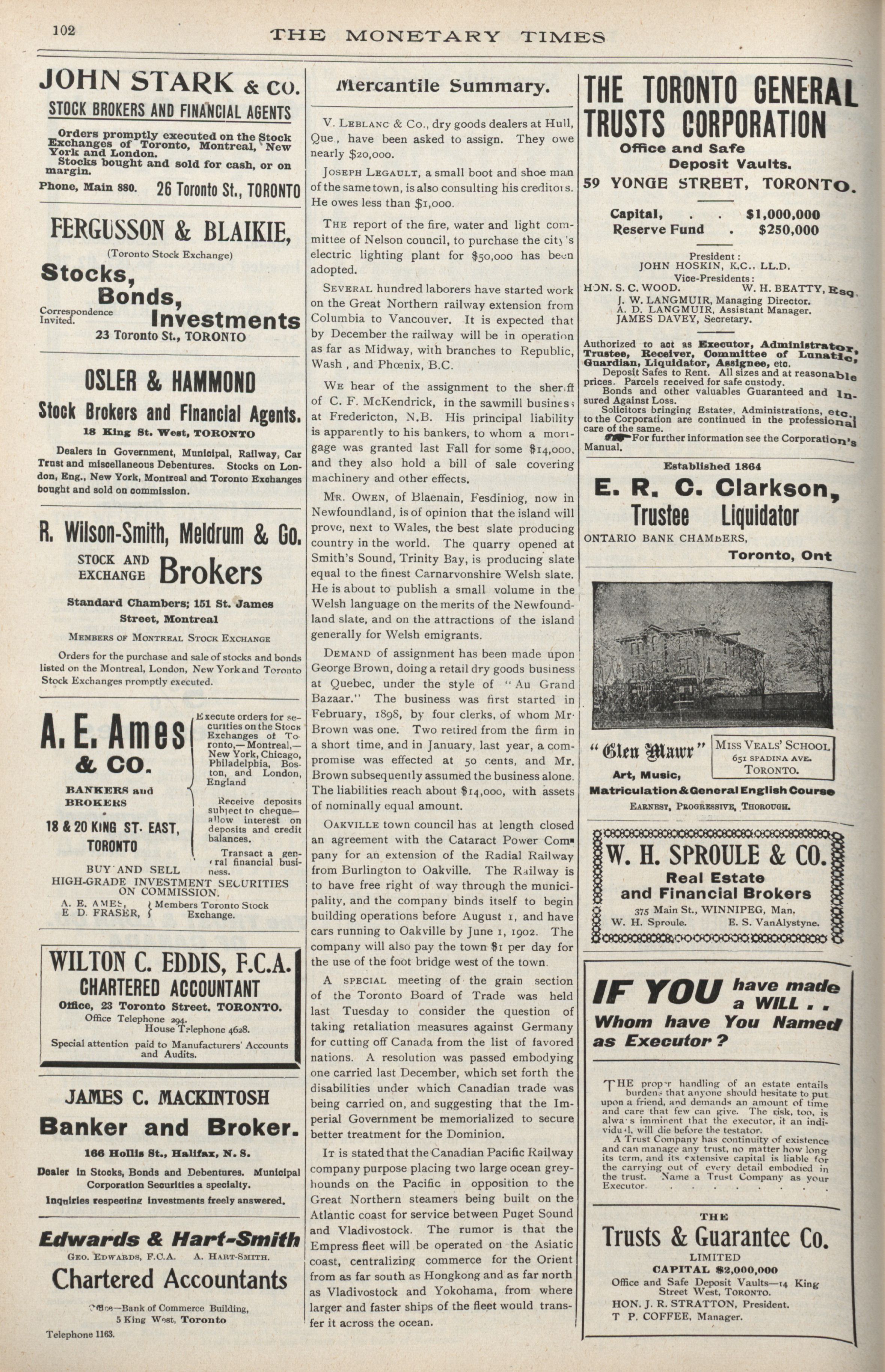 - The Monetary Times, trade review and insurance chronicle. : Vol. XXXV No. 4 (July 26, 1901)