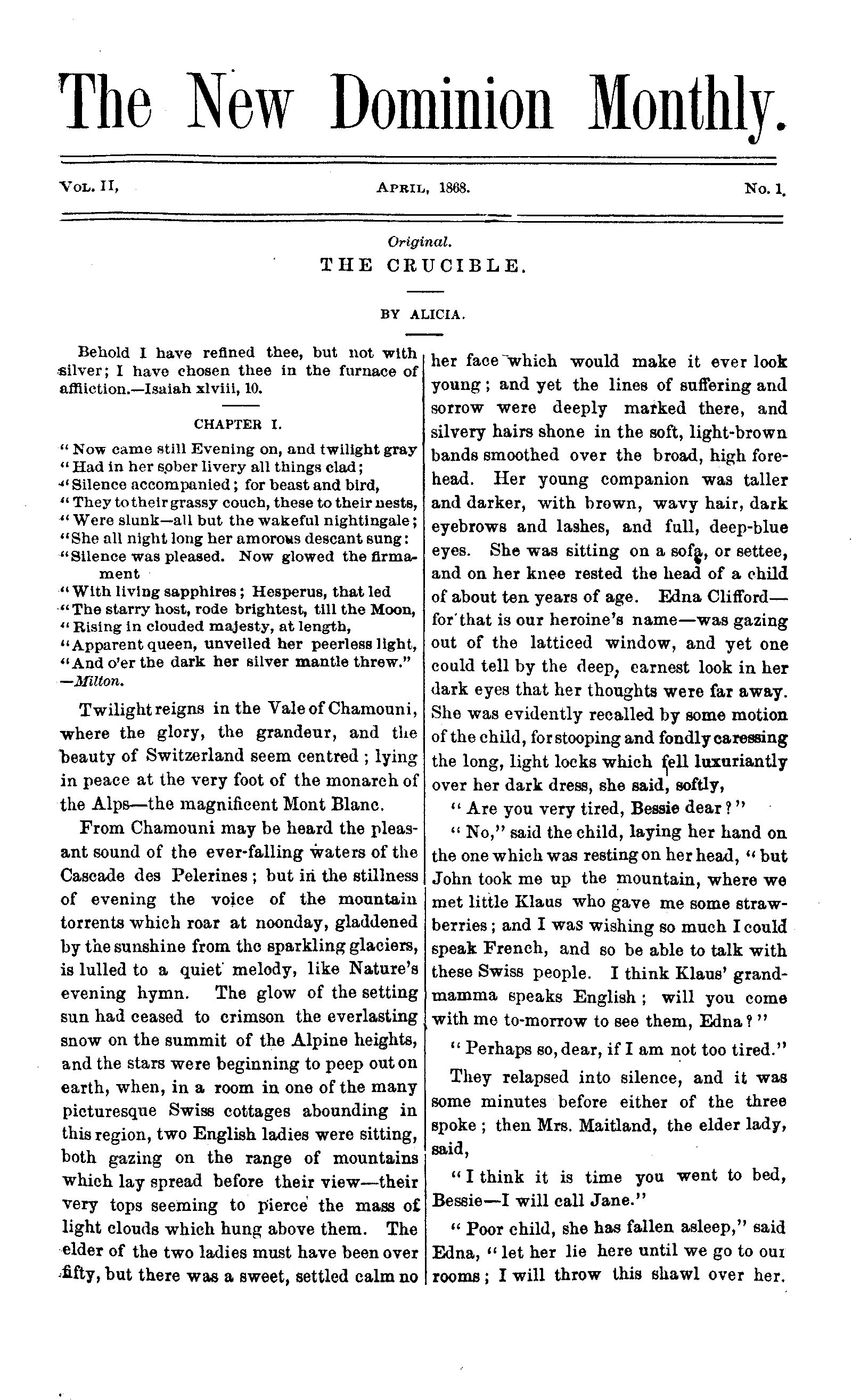 - The new Dominion monthly [Vol. 2, no. 1 (Apr. 1868)]