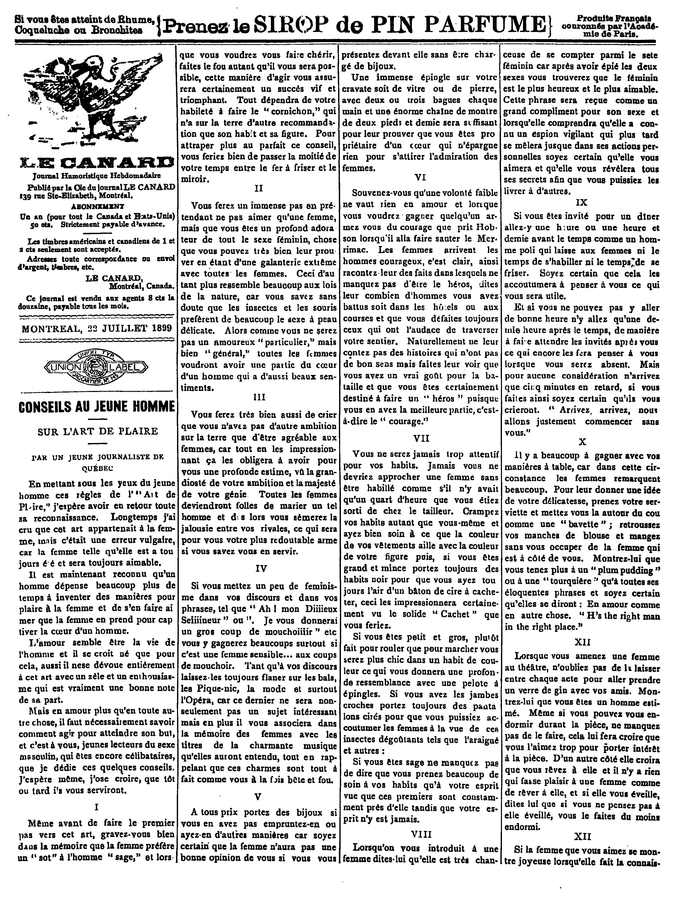 Montréal : Cie de journal Le Canard, [1899]; 9 images avec recherche en texte intégral