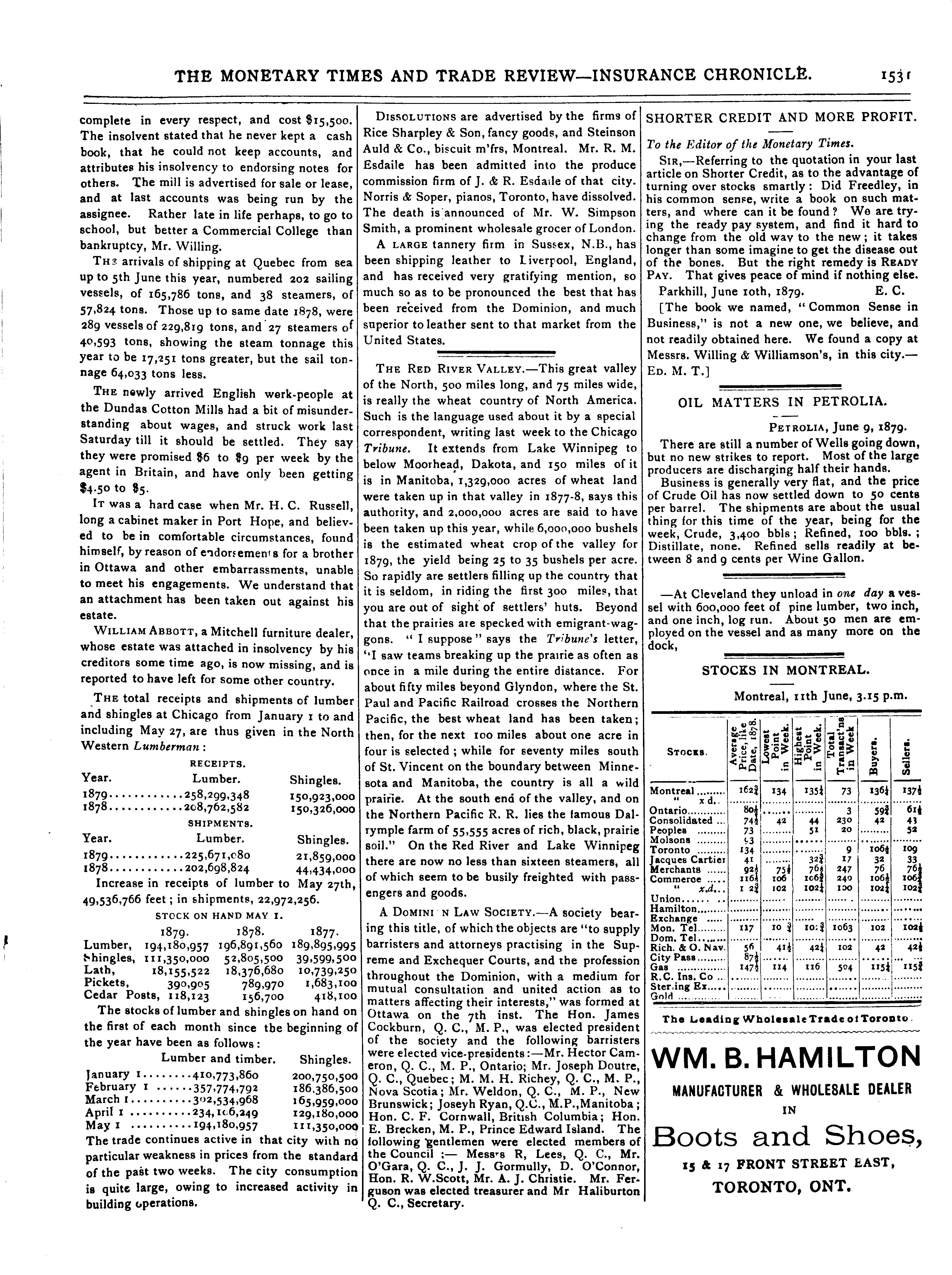 The monetary times and trade review insurance chronicle : [Vol. 12, no. 51 (June 13, 1879)]